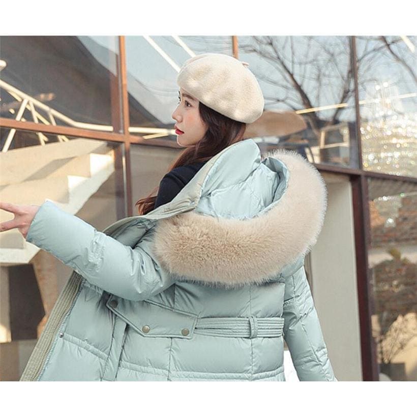 アウター 冬 コート 新作 ダウン コットン 女性ロングセクション 膝 大きな毛皮の襟 韓国バージョン スリム ベルト その他 アウター
