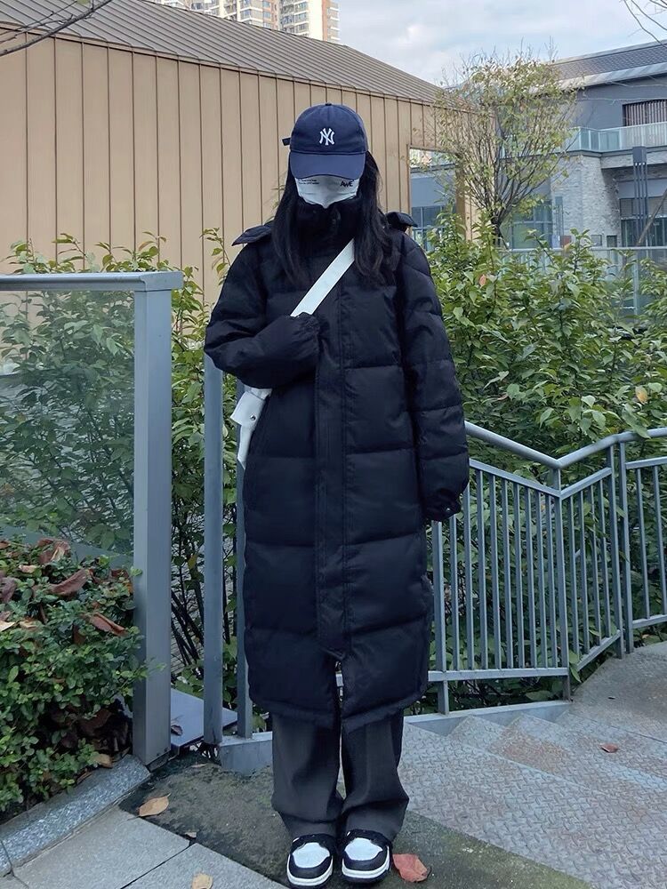 ブラック 綿のジャケット 女性 ロングセクション 2024 防寒着 新作 厚手 カップルコットンジャケット ニーコート その他 アウター