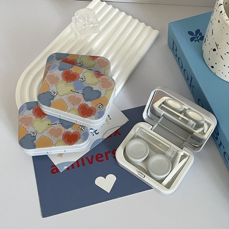 コンタクトケース ラコンケースカラコン コンタクトレンズケース取付けクリップ棒ピンセット レンズケース コンタクトレンズケース 携帯用透明 ミニボックス 収納ケース