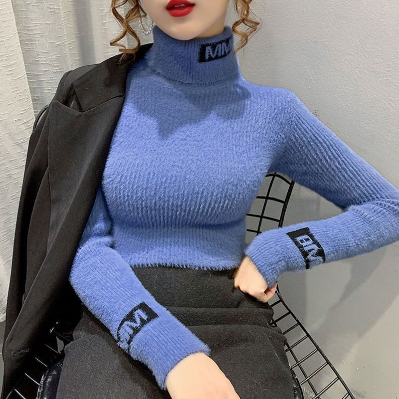 人気なリブニット韓国 裏起毛ファッションカシミヤタッチ ニットセーター トップス 裏起毛インナー ベーシックニット タートルネック ゆったりスウェット セーターレディース