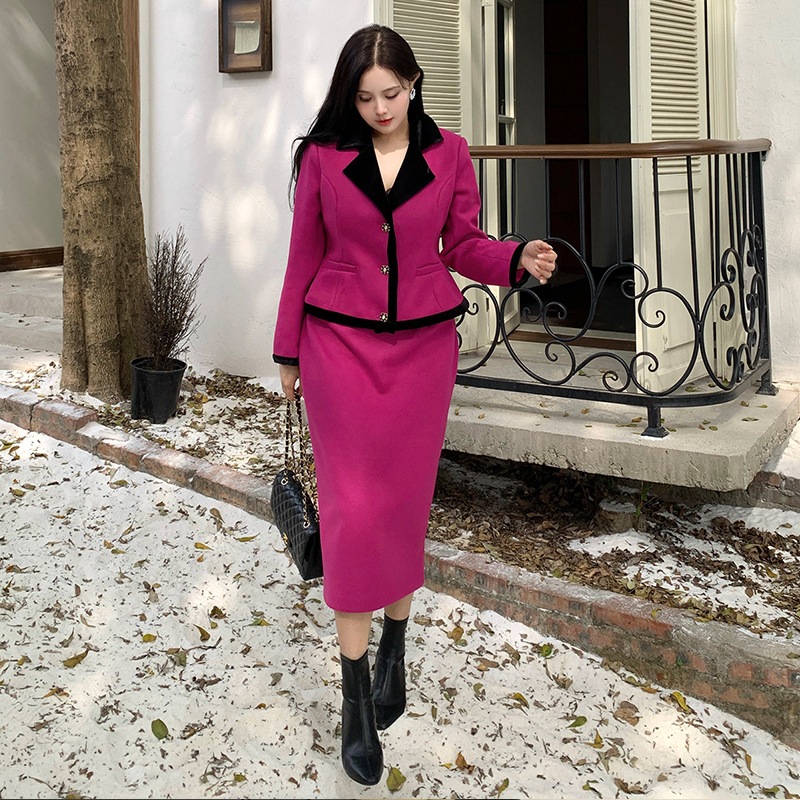 大きいサイズ XL-5XL 高級感 パープル 上下セット 着やせ フランス風 レトロ セットアップ フォーマル パーティー メガ割