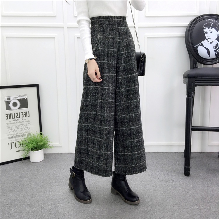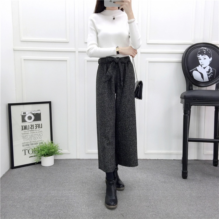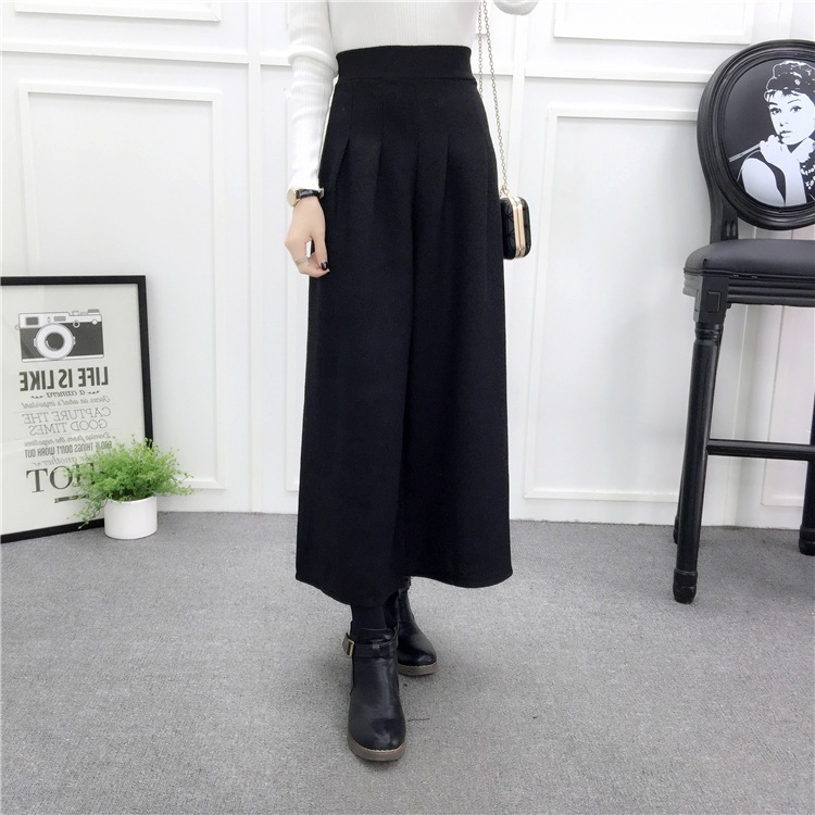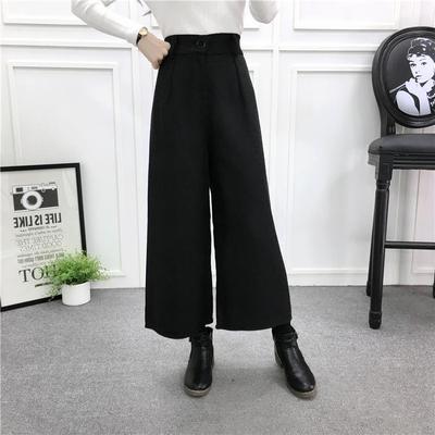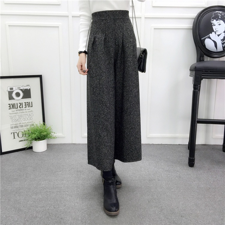冬対策 パンツ レディース ワイドパンツ ウール混 ガウチョ 体型カバー ウエストゴム ハイウエスト ボトムス パンツ ズボン ワイド 通勤 オフィス