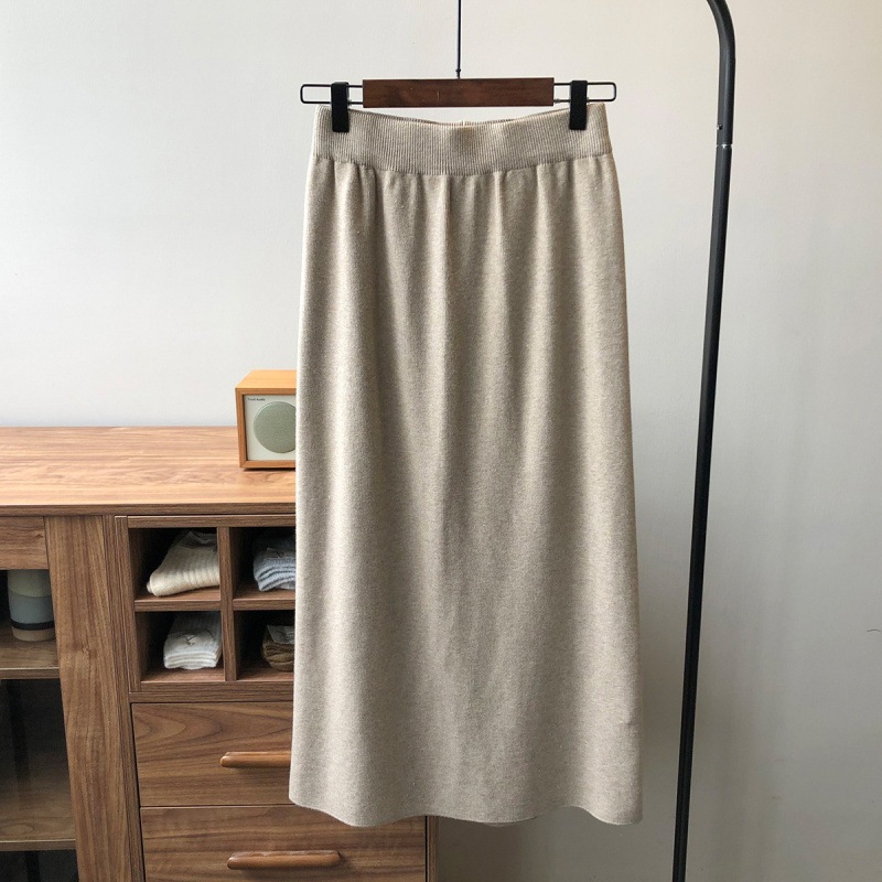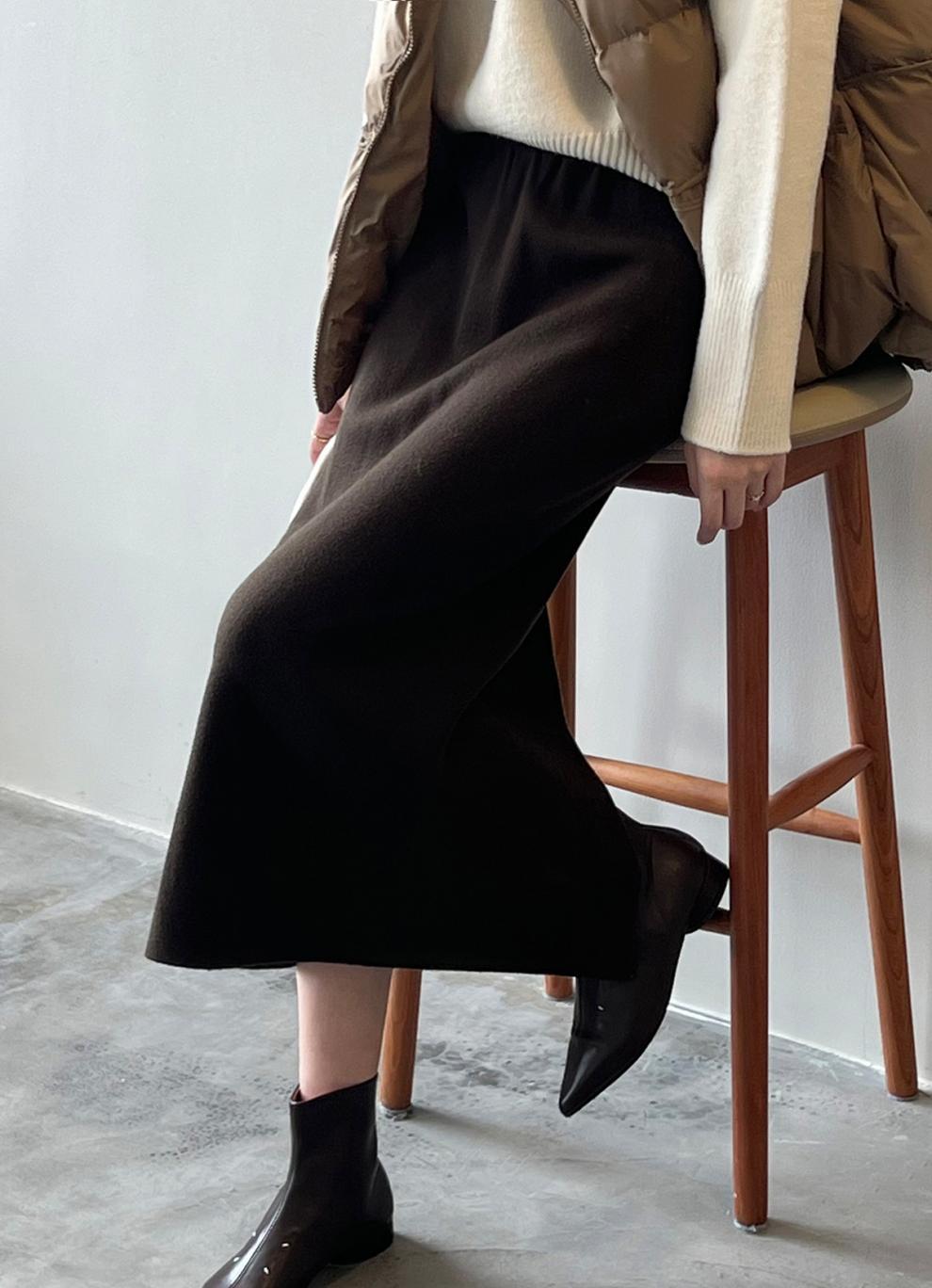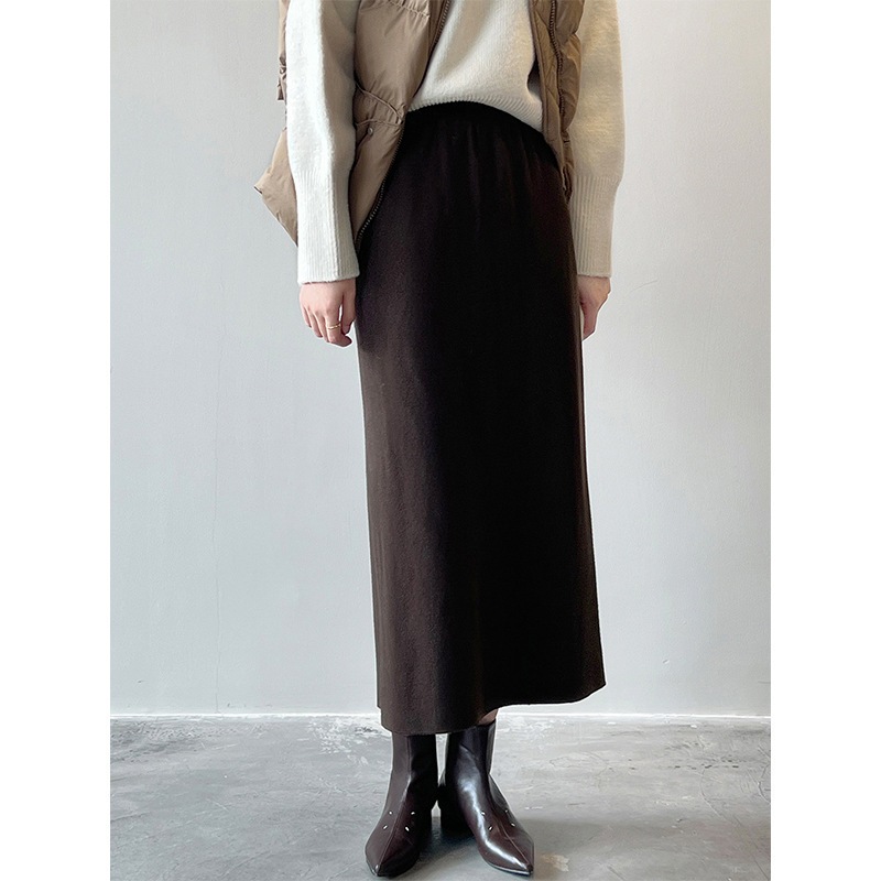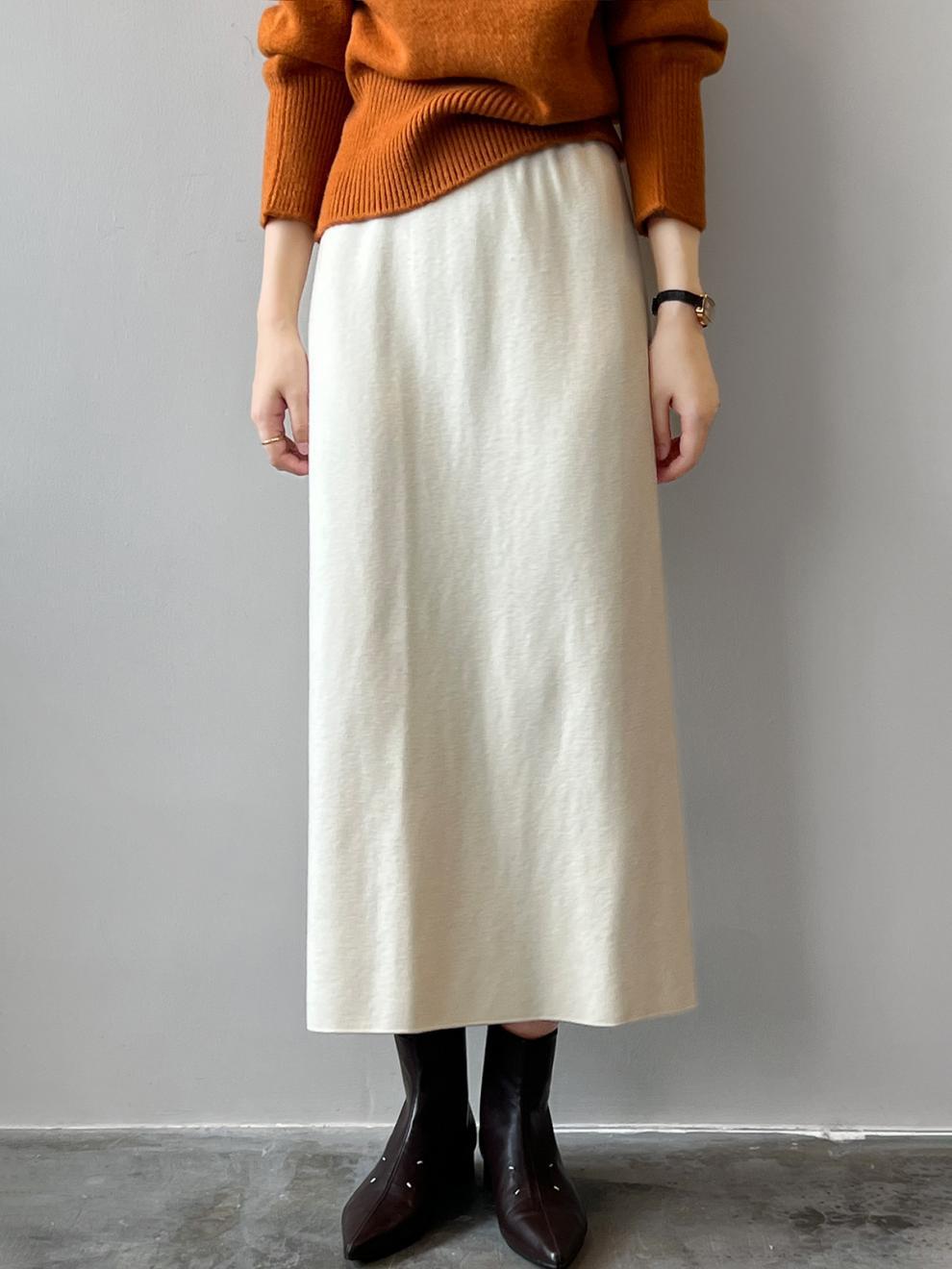 韓国ファッションミディアムスカート 4Color選べま フェミニンラインで上品なニットタイトスカート ニット生地 だから履きやすい 秋 冬 春使用 ニットスカート