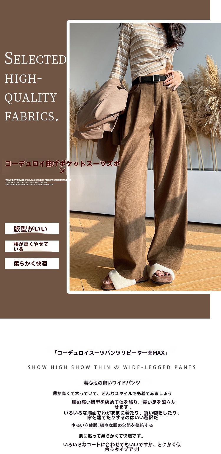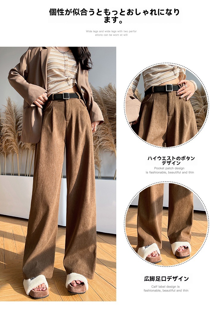 ワイドパンツ 秋冬 裏起毛 パンツ レディース ロングパンツ 微起毛 ガウチョパンツ 体型カバー パンツ ストレートパンツ ロング ロング丈パンツ コーデュロイ 秋物 裏起毛 ウェストゴム ポケット付