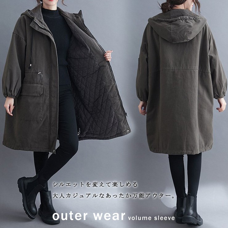 大きいサイズ レディース モッズコート アウター ロング丈 フードつき オーバーサイズ ミリタリー 中綿 冬 L LL 3L 4L 5L 6L グレー 新入荷