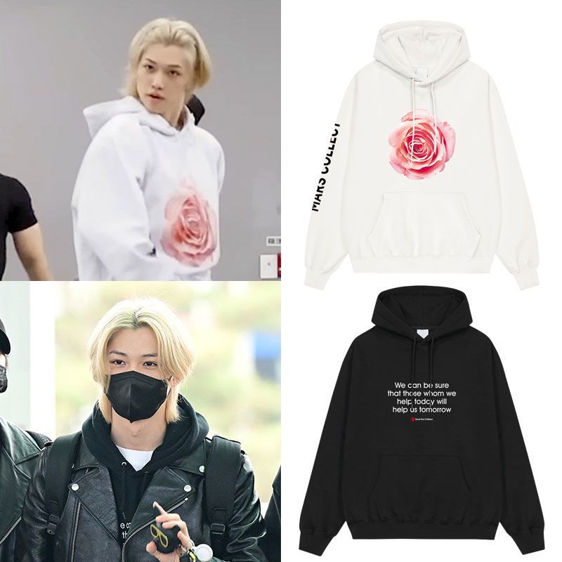 StrayKids服フェリックス李龍馥同服ゆったり連帽プルオーバープリント薄手加絨衛衣 パーカー