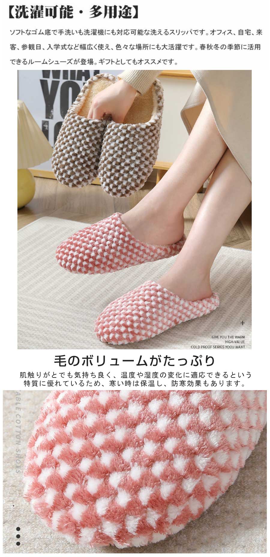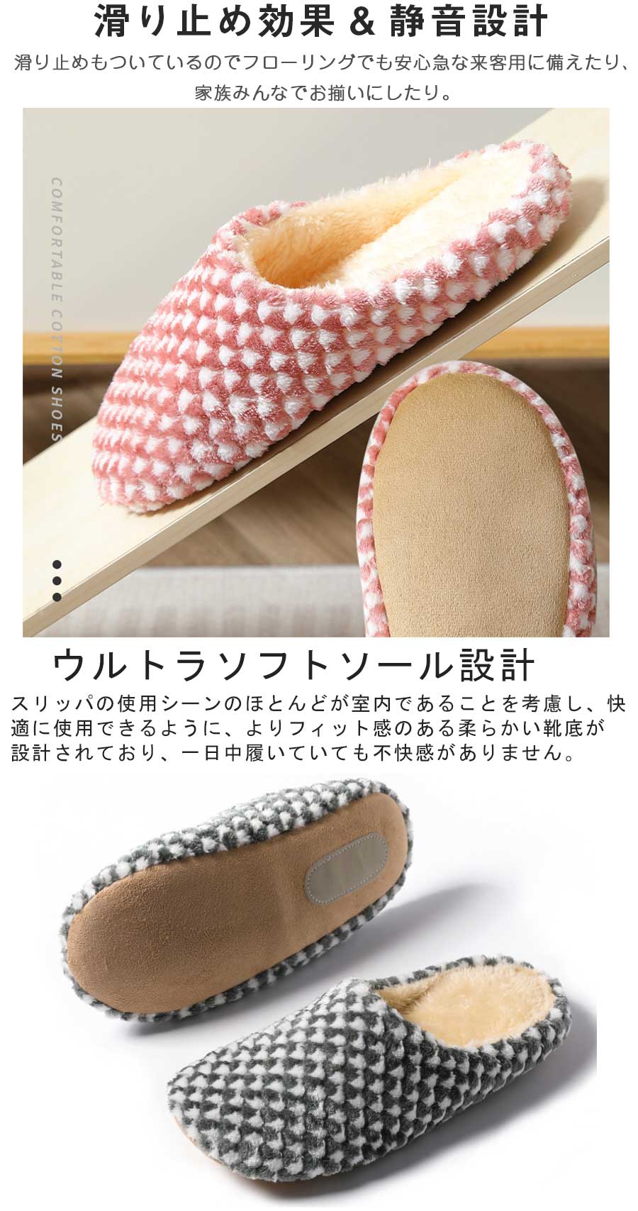 2点購入で600 OFF スリッパ 冬用 暖かい 軽量 蒸れない もこもこ ボア ルームシューズ チェック 洗える メンズ 大きいサイズ 滑り止め レディース おしゃれ かわいい 吸湿発熱素材
