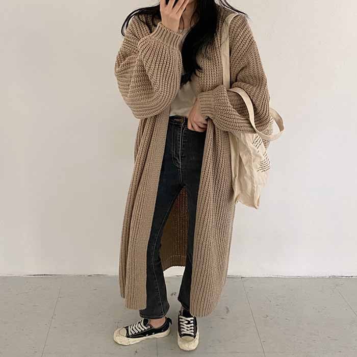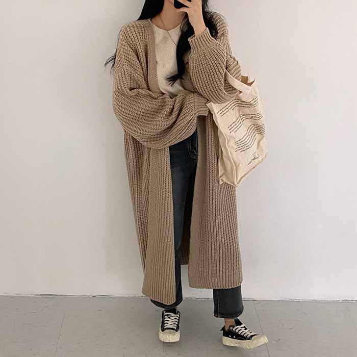 ニットカーディガン カーディガン ニット ざっくり編み カーデ ロングカーディガンコート レディース アウター ロングニットセーター とろみ 膝下丈 ゆったり 柔らか カジュアル 春 秋 冬 通勤