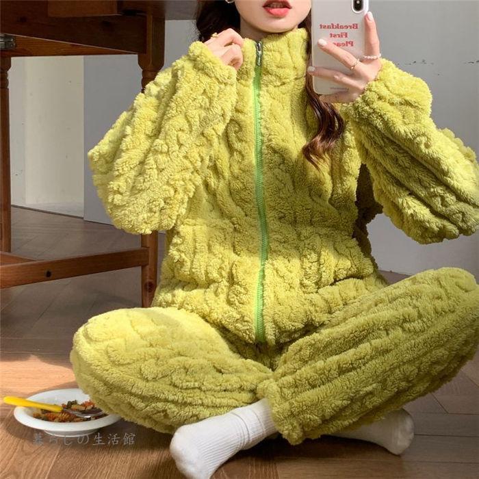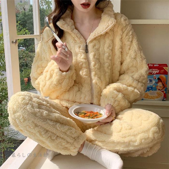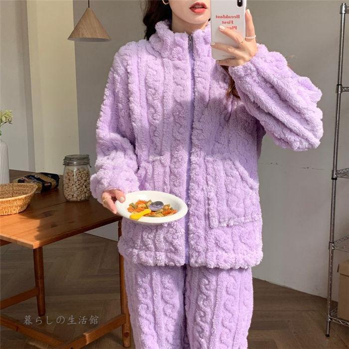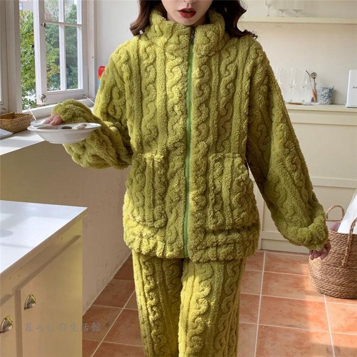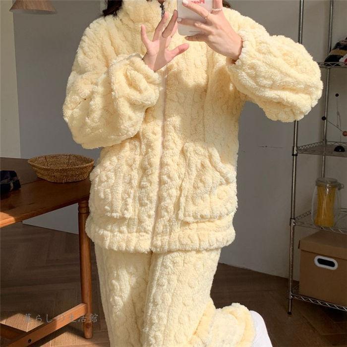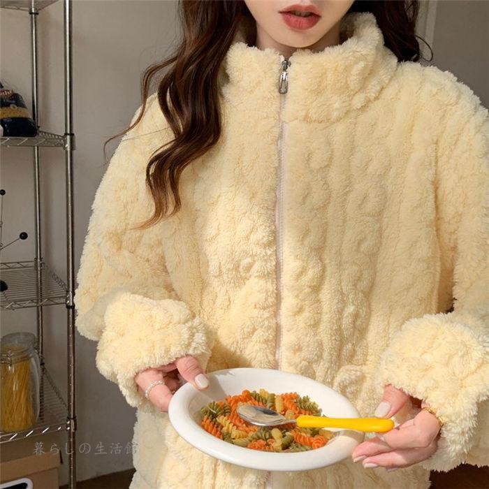パジャマ ルームウェア 2点セット 上下セット レディース 暖かい 裏起毛 ハイネック 長袖 ロングパンツ セットアップ もこもこ 部屋着 可愛い ナイトウェア