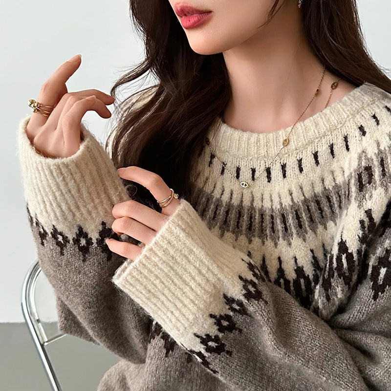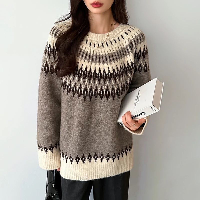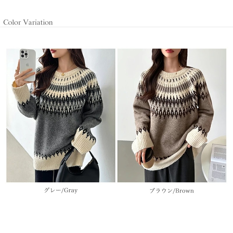 ルディック柄セーター ニット オーバーサイズ セーター ノルディック ニット レディース トップス 長袖 ゆったり ノルディック柄 ニットセーター プルオーバー 大きいサイズ