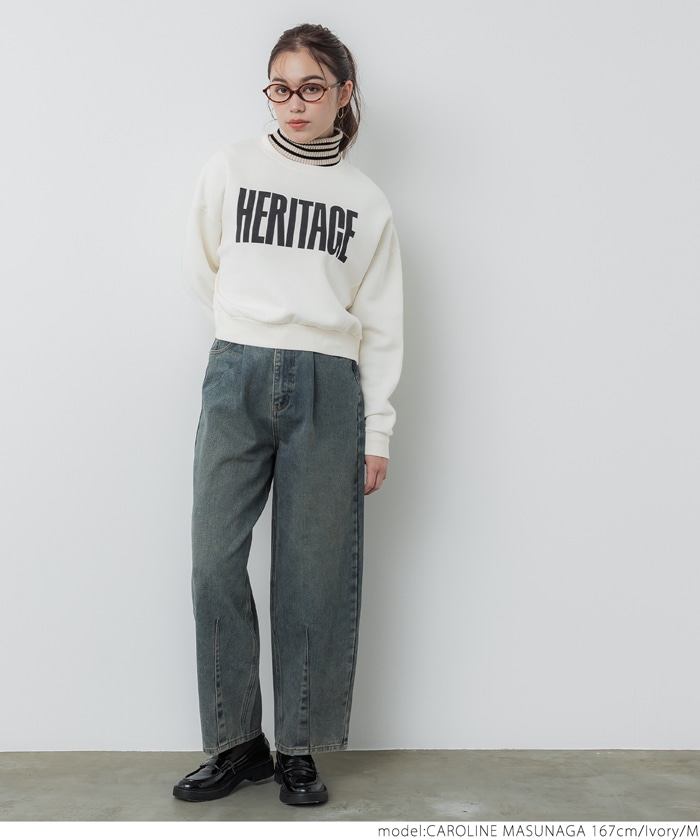 coca お正月値下げ ポリエステルコットン裏起毛フロッキークロップドスウェットトップス レディース トレーナー