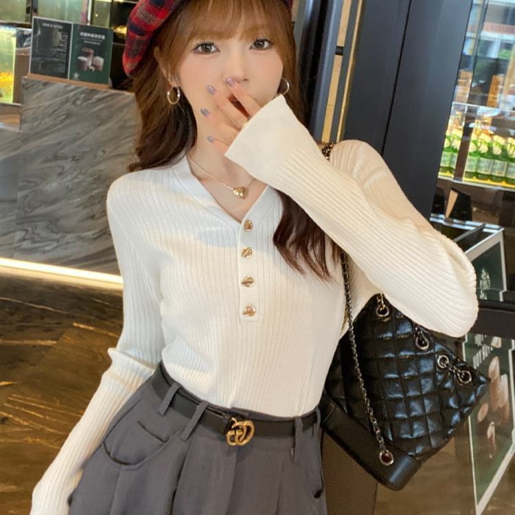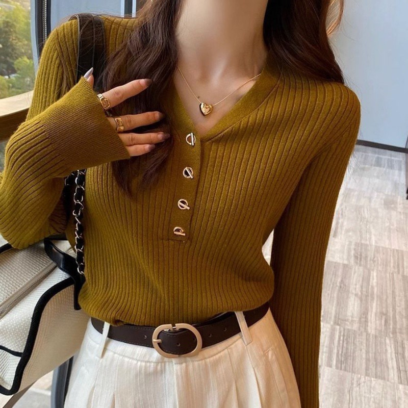 人気レディースファッションvネックセーター 秋冬ニットセーター リブニット暖かい 長袖 トップス インナー 通勤大きめサイズ カジュアルゆったり 着やせ