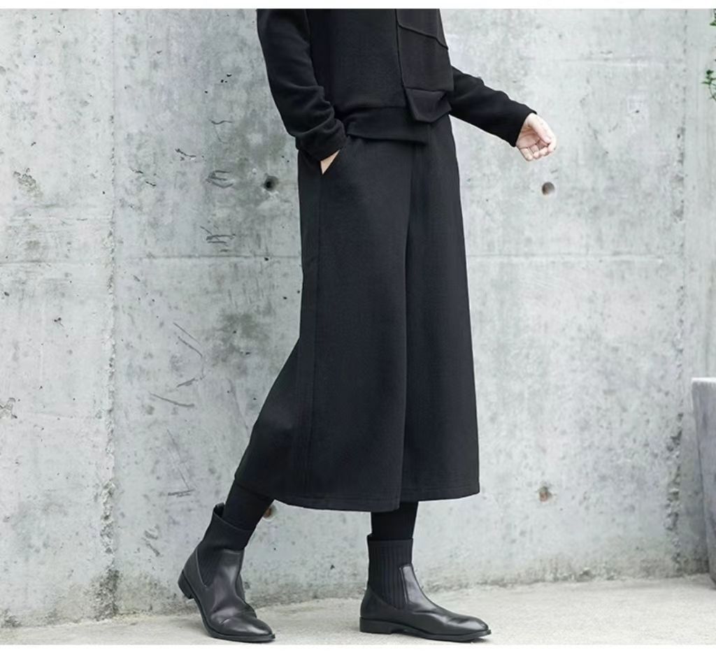 ワイドパンツ パンツ レディース 秋冬 9分丈 微起毛 スカーチョガウチョパンツ ウール調 ゆったり ウエストゴム フォーマル 大きいサイズ イージーパンツ ひざ下 ポケット ロングパンツ 美脚 落ち