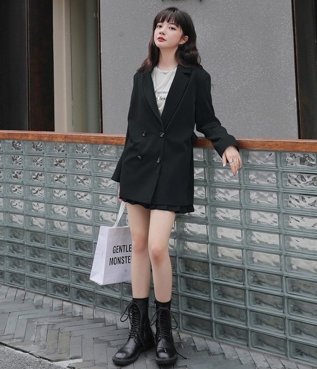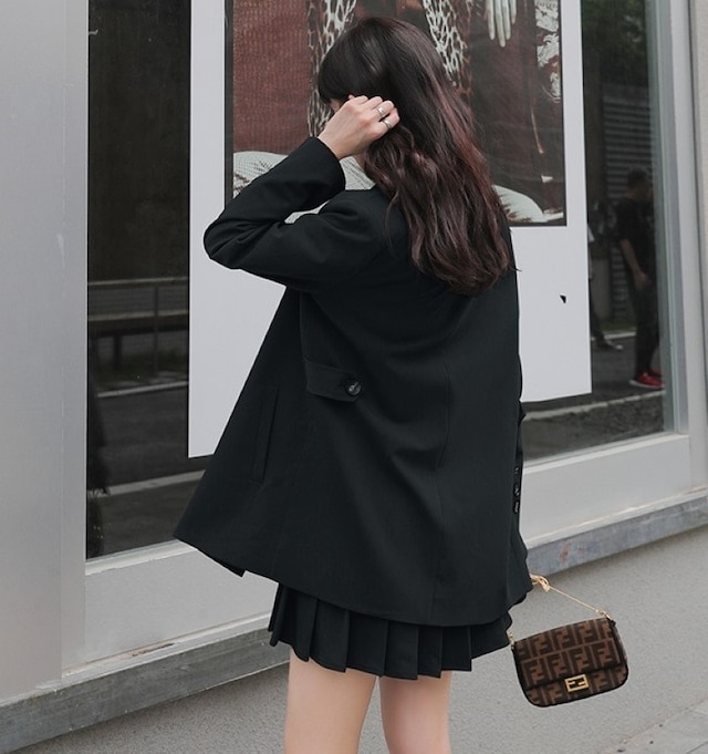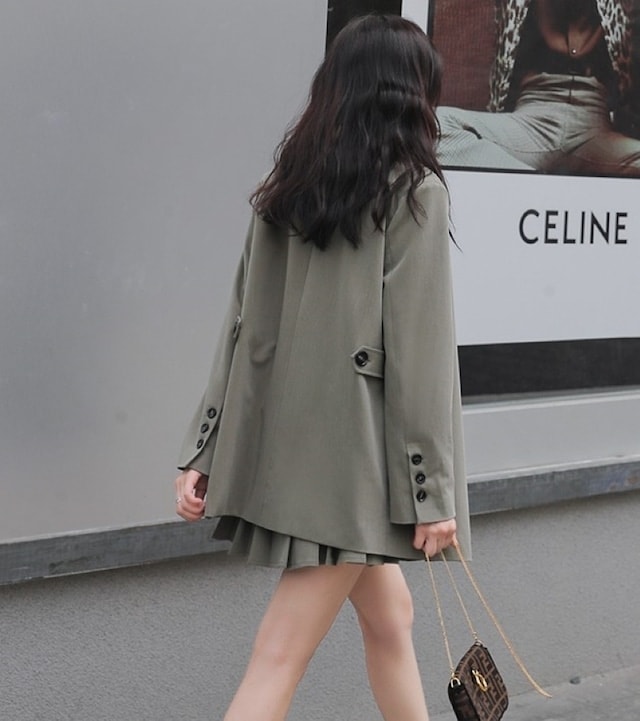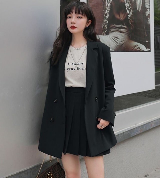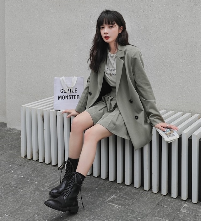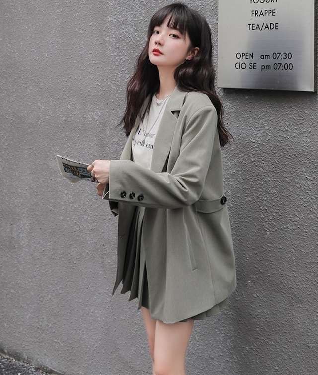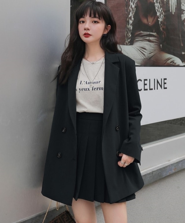 セットアップ ジャケット ミニスカート プリーツスカート ショート丈 ロングテーラードダブルジャケット 上下セット 2点セット 春 秋 レディース ビジネス お出かけ 休日 旅行 普段使い 韓国系