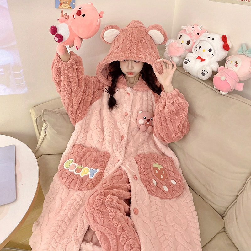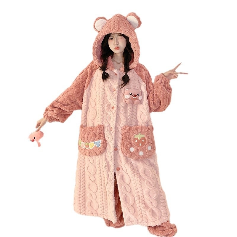 フランネルパジャマ レディース 秋冬モデル 中綿入り 厚手 あったか バスローブ かわいい フード付きローブ コーラルベルベット ホームウェア