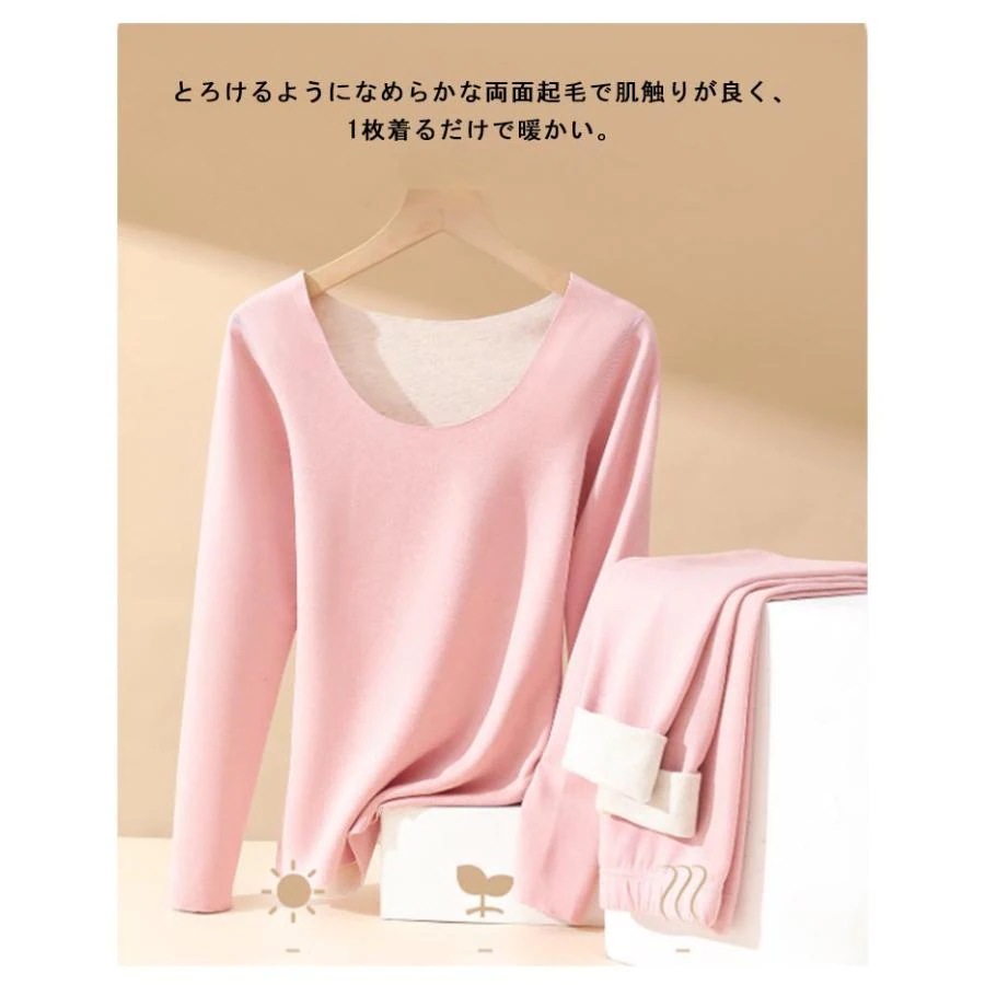 ヒートテック 上下セット レディース 防寒 インナー 防寒着 2点セット 冬 極暖 裏起毛 防風 シームレス 長袖 Uネック カットソー インナーシャ