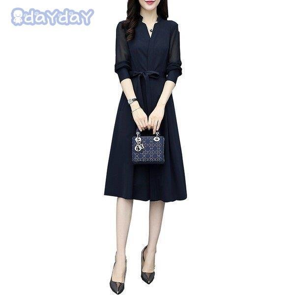 ワンピース レデイース 40代 春 長袖 きれいめ 上品 ミモレ丈 Aラインワンピース 無地 フォーマル おしゃれ 大人 通勤 二次会 入学式 ママコーデ 30代
