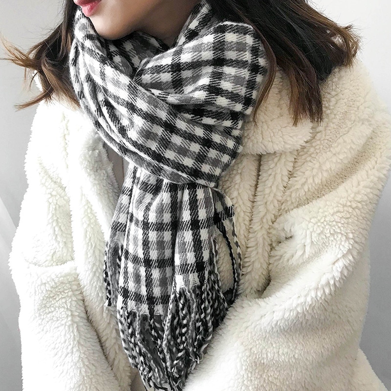 デイリーマフラー 秋と冬の新しい冬の格子縞のマフラーはショールを編んだ マフラー