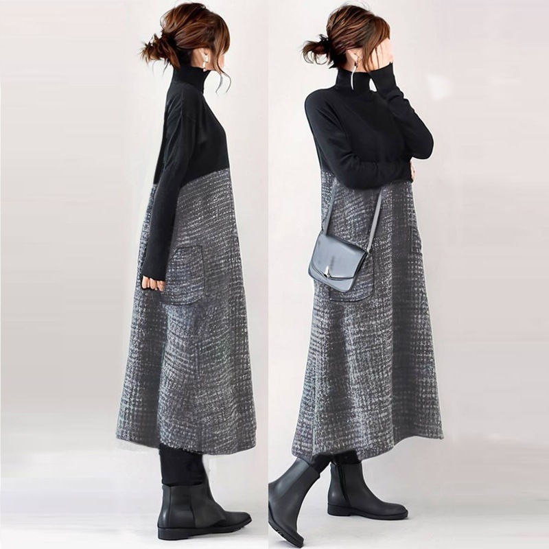 ワンピース レディース ニット 長袖 ロング丈 上品 ドッキングワンピース ワンピースオシャレ 大人セーターワンピース 韓国風 通勤 着痩せ