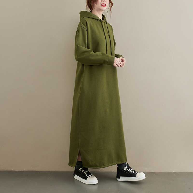 新作 ワンピース 気質 パーカーワンピース 裏起毛 厚手 ロングワンピース ワンピース 秋冬 大きいサイズ レディース 体型カバー ニットワンピ