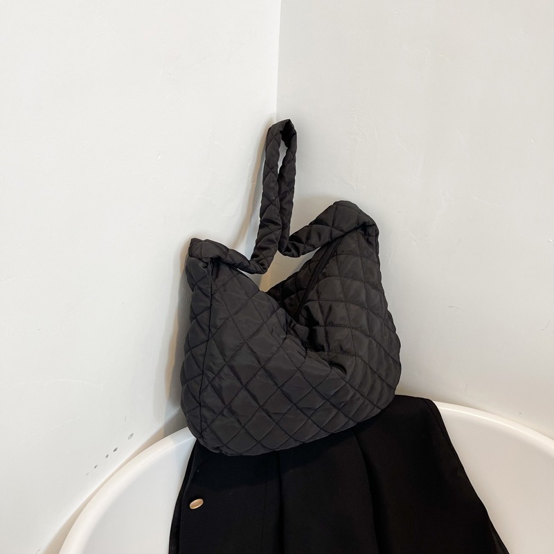 キルティング バッグ ワンハンドル ショルダーバッグ ファスナー付き 斜め掛け 肩掛け 大容量 超軽量 A4サイズ マチあり シンプル おしゃれ かわいい コンパクト トラベル 旅行 お出か