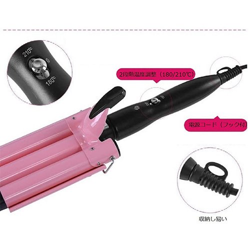 [(xaiiou]プロ仕様 Max210℃ セラミックコーディング 3連バレルのウェーブアイロン ヘアアイロン 美顔器