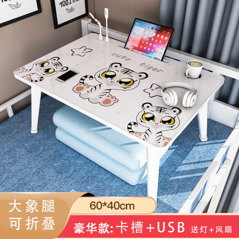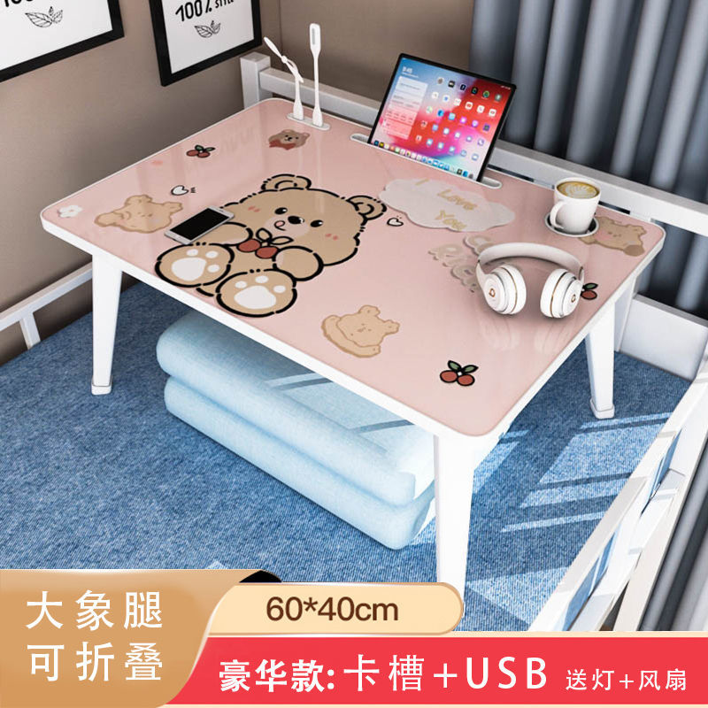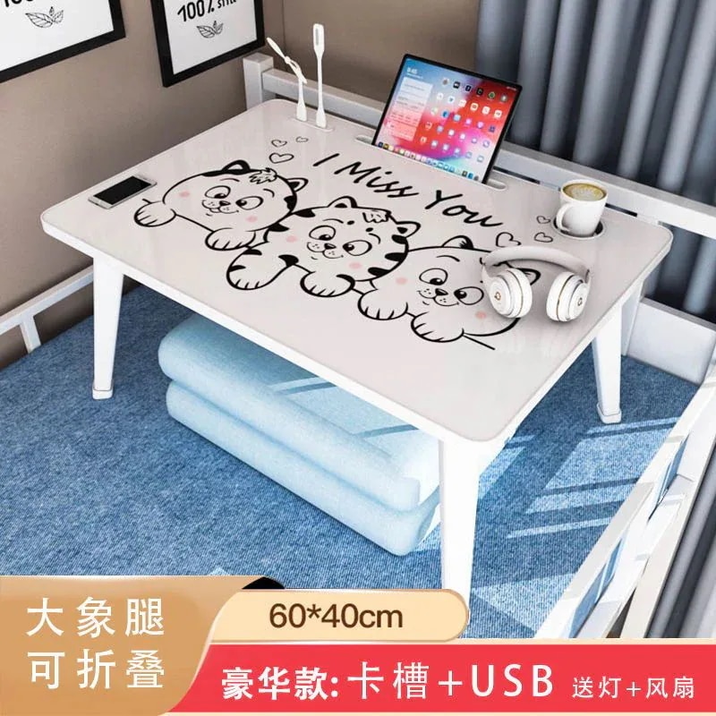ベッドの上の机の学生寮のノートの机は机の折り畳みテーブルの寮の学習テーブルのテーブルを書いている 机 デスク