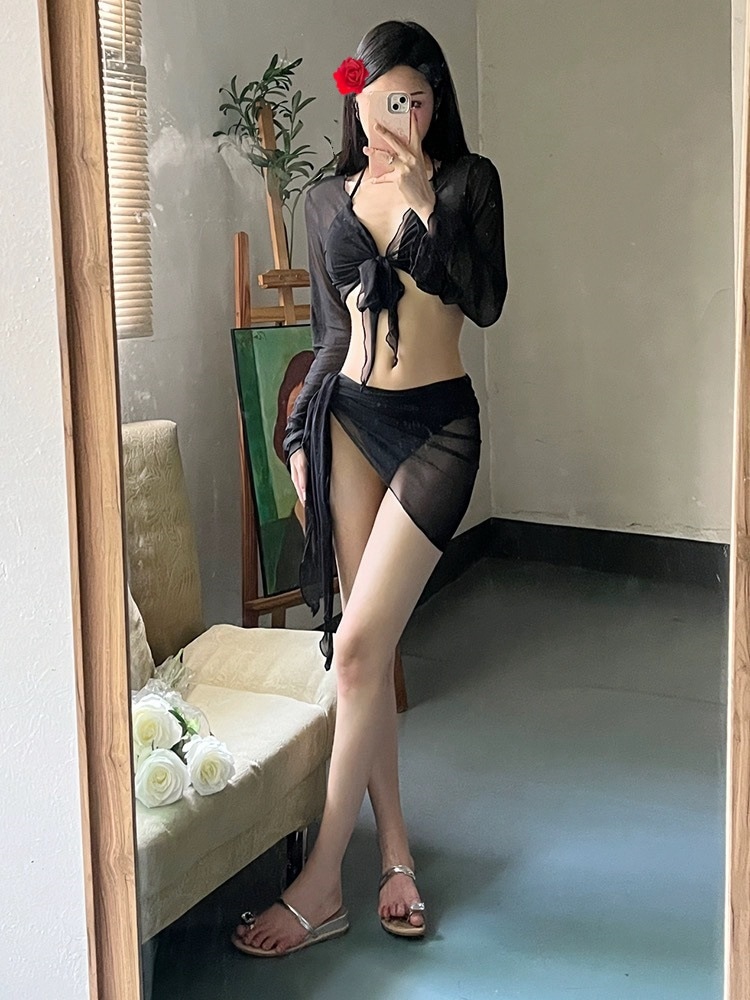 水着 2025 新作 ホリデー レッド ビキニ 4点セット 薄手 肉を隠す セパレート レディース 体型カバー 韓国ファッション ワンピース水着