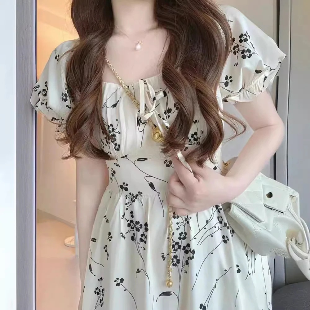 花柄ドレス夏2024新しい優しい風シフォンロングドレスドレス プリント 柄ワンピ
