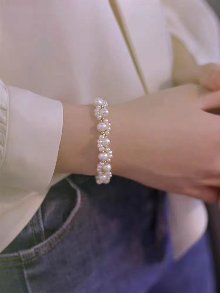 手元を美しく パールブレスレット 着痩せ 韓国ファッション レディー バングル 春夏 アクセサリー プレゼント ブレスレット