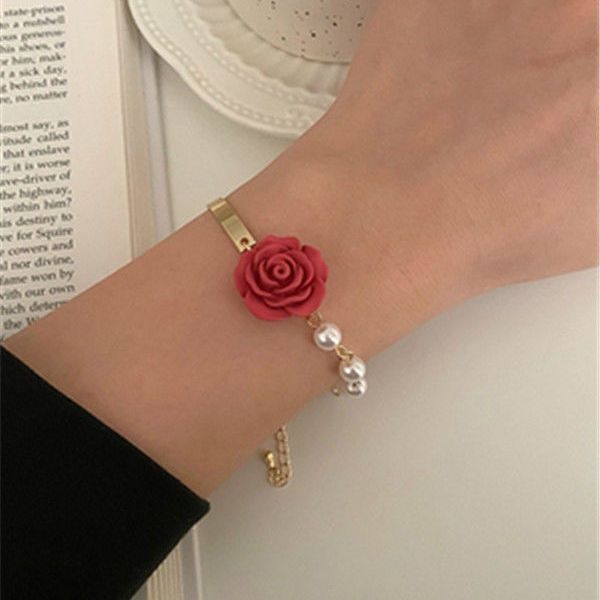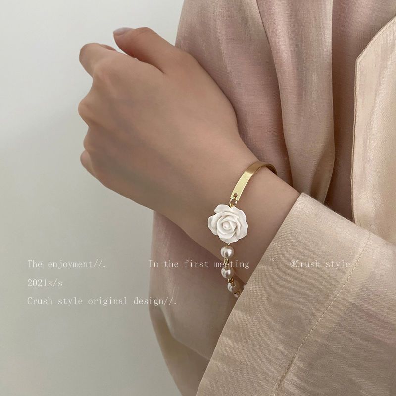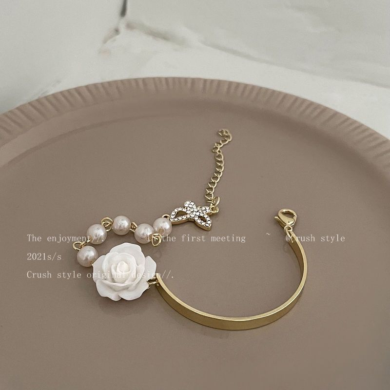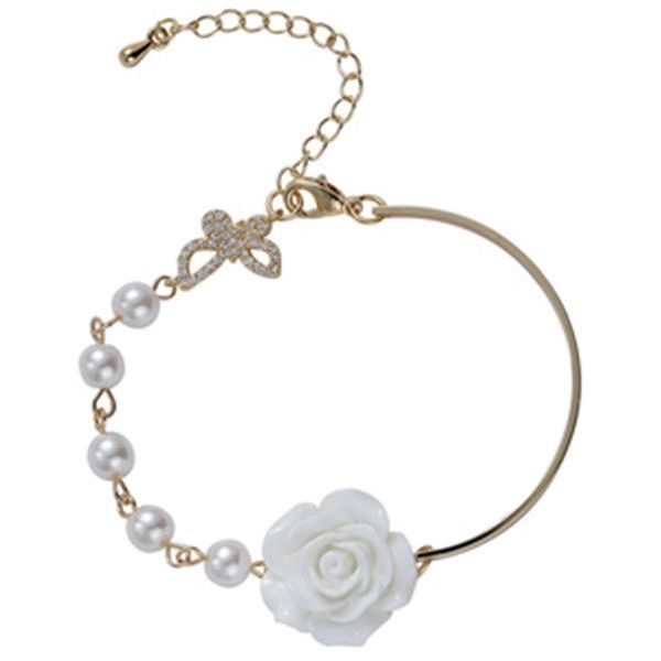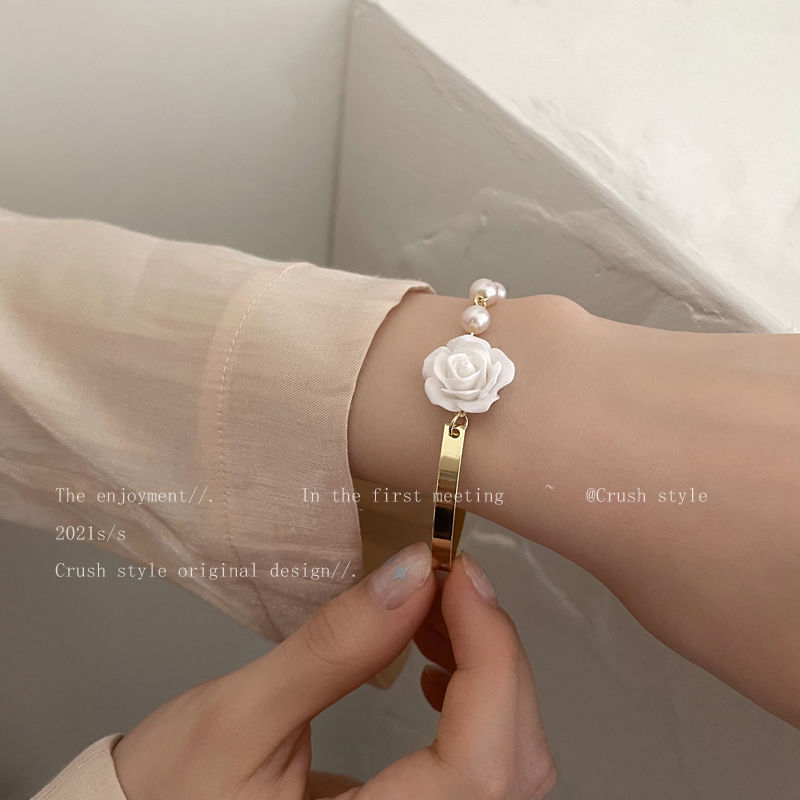 手元を美しく フラワー パール ブレスレット 着痩せ レディー バングル フレンチレトロ チェーン ハンドアクセサリー ブレスレット