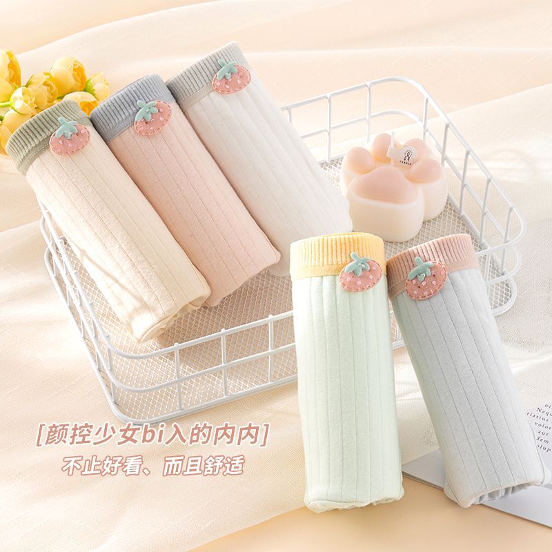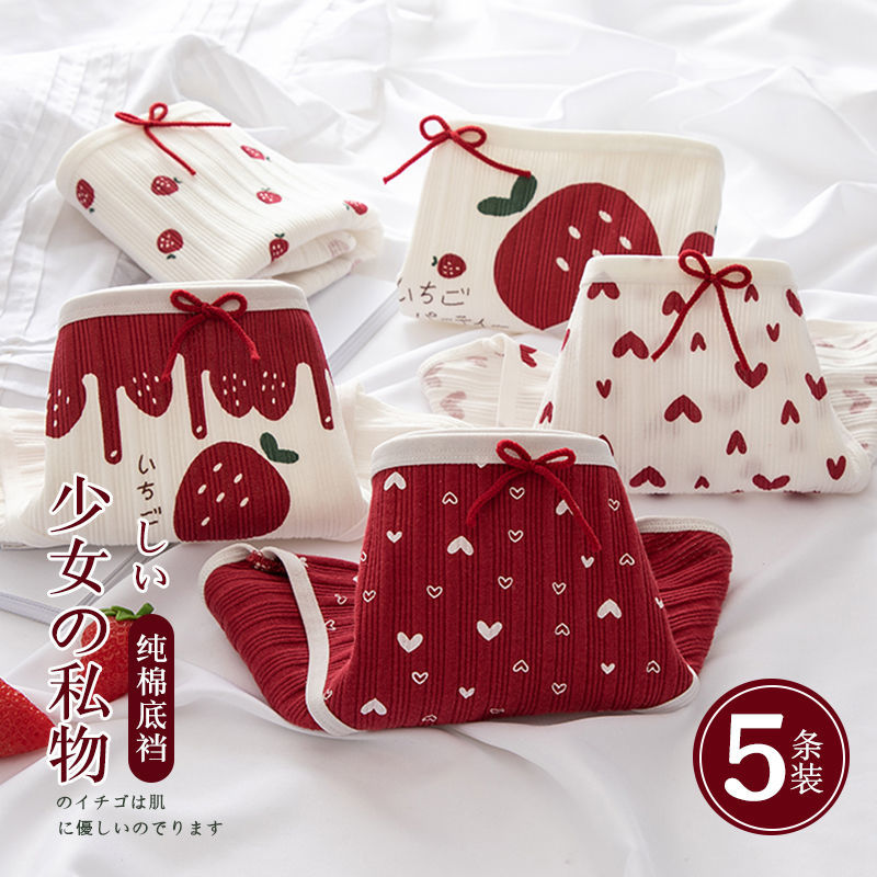 5条の下着を入れる女性の綿の中腰抗菌の大きい赤色のかわいい日本のいちごの中高校の学生の三角のズボンの頭を入れます ショーツ