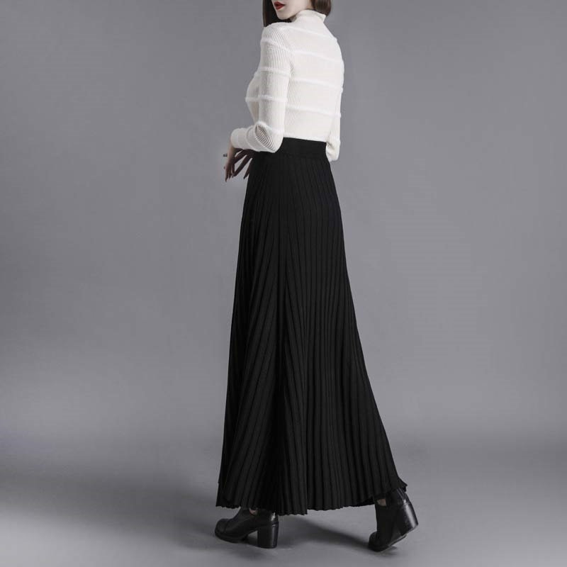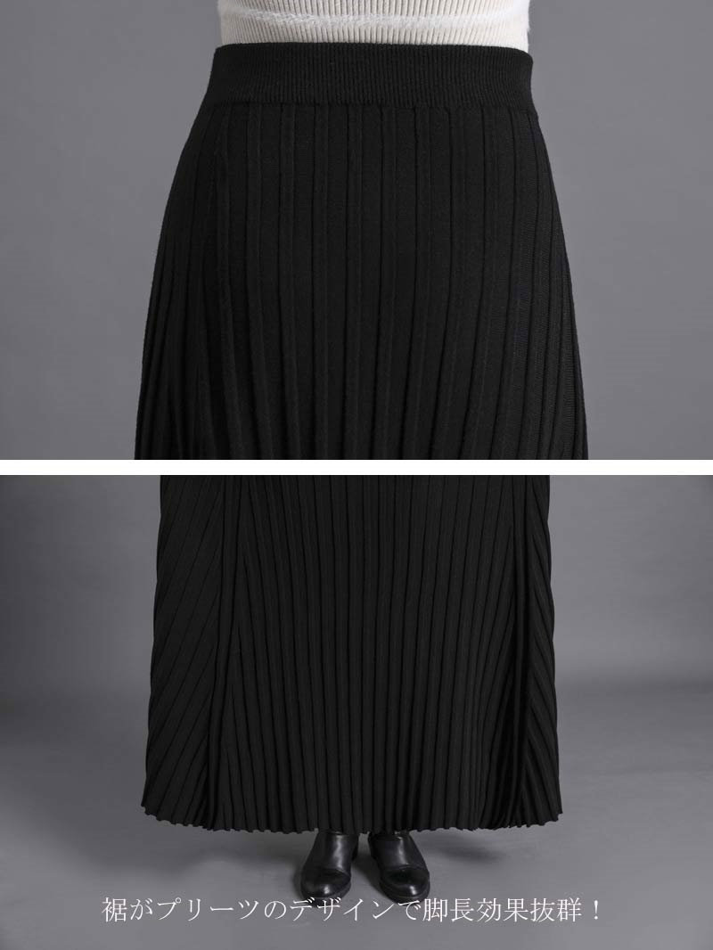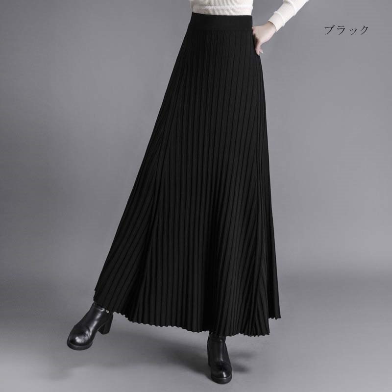 冬 マキシ丈 ロング丈 OL スカート オフィス 秋 ニットスカート ボトムス プリーツスカート aライン フレア レディース ニット マキシ ハイウエスト ロングスカート マキシスカート リブ 黒