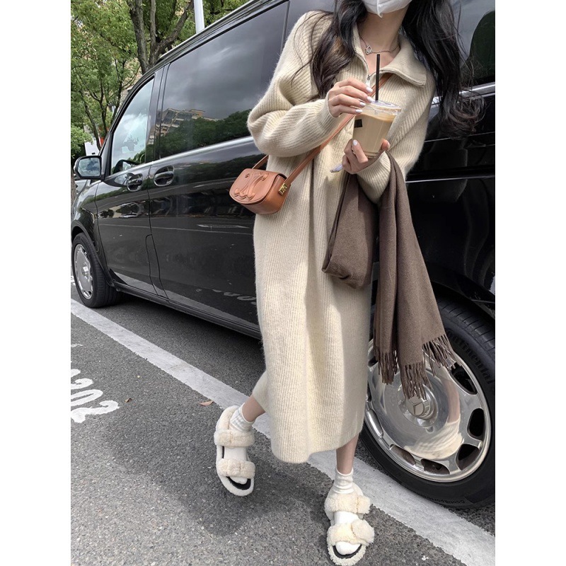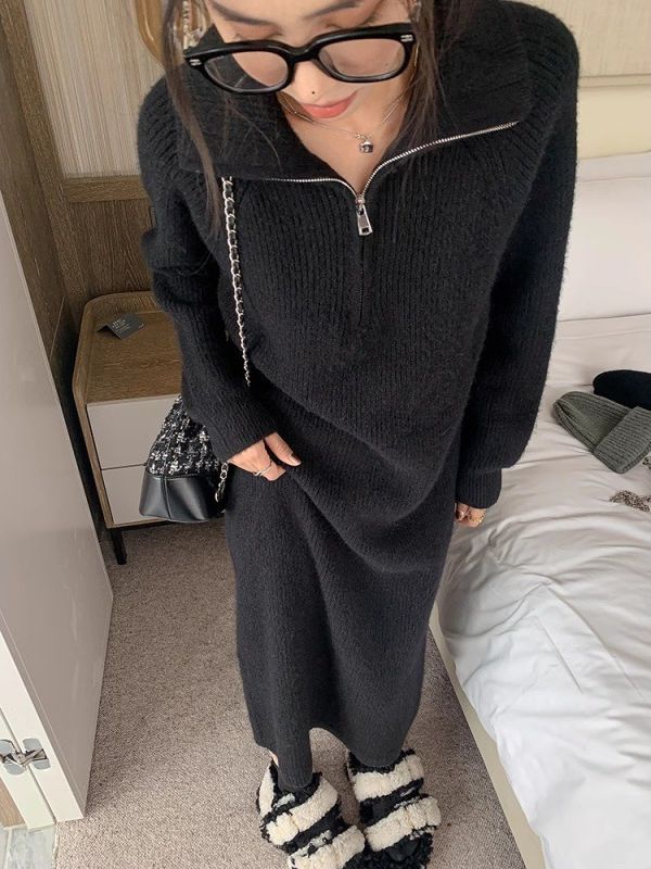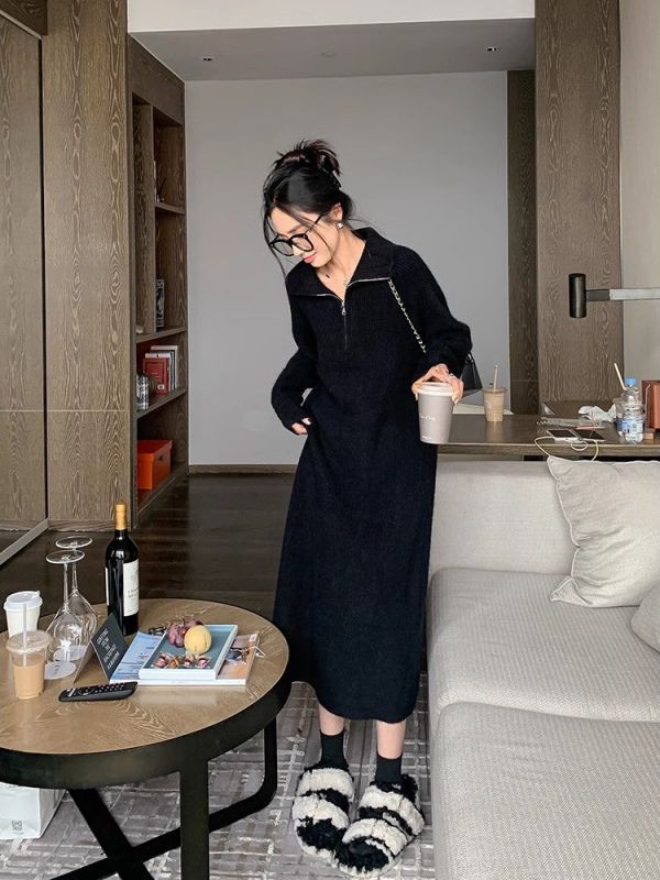 冬のワンピース ロングスカート 韓国ファッション レディース 長袖 ニットワンピース 秋冬 ゆとりがある ロング丈のインナースカート その他 ワンピース ドレス