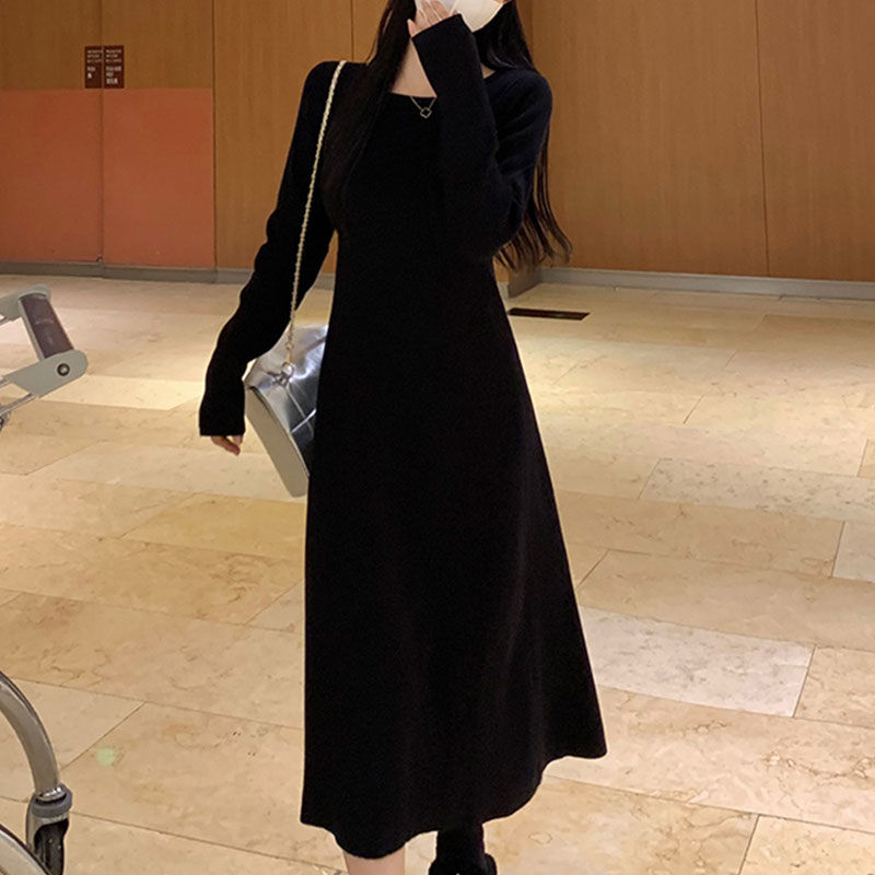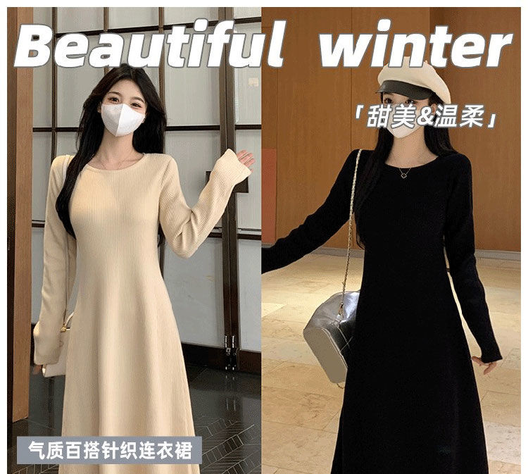ワンピース ロングスカート 簡単な ニットロングスカート 秋冬 やせて見える ミディアム 長袖 ダウンコート 韓国ファッション レディース その他 ワンピース ドレス