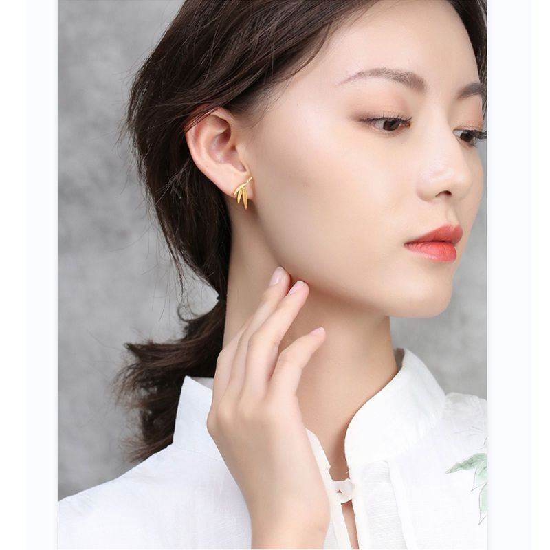 人気 ピアス 2025年新作ゴールドの竹の葉気質イヤリング女レトロな中華風ピアス高級感 イヤリング