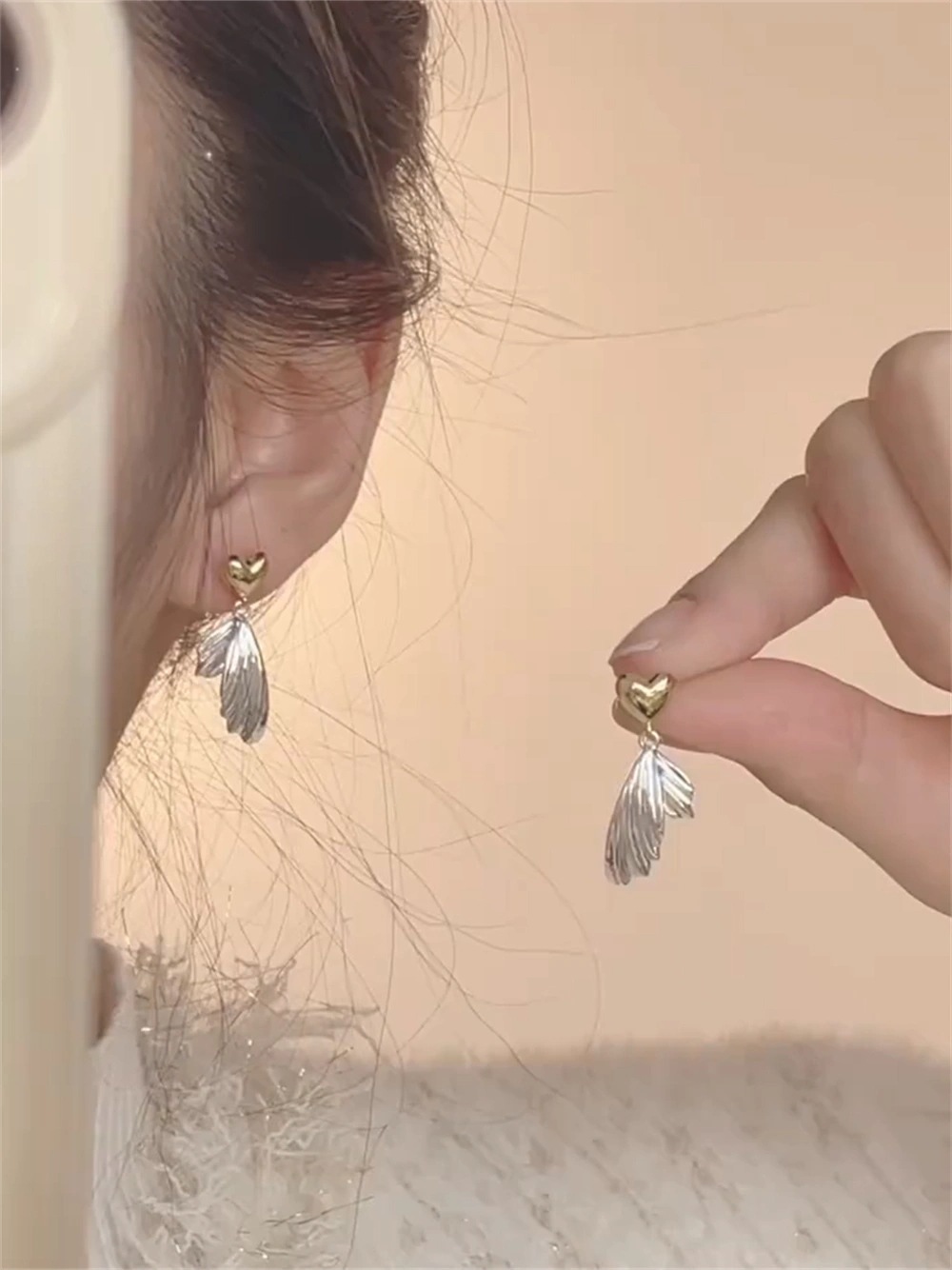 人気 ピアス 925銀針金銀衝突色ハート魚尾ピアス女性小人数設計レトロ気質ピアス高級ピアス イヤリング
