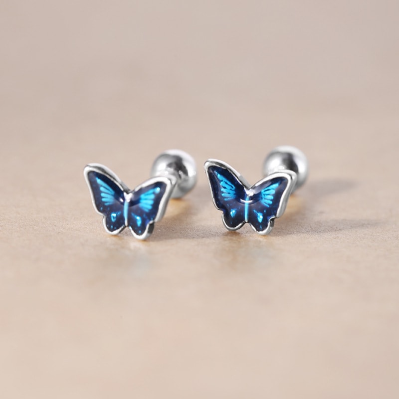 ファッション 冬のピアス S925シルバーピン ブルーの油垂らし蝶イヤリングレディース ピアス エレガントでシンプル ミニ アクセサリー ピアス