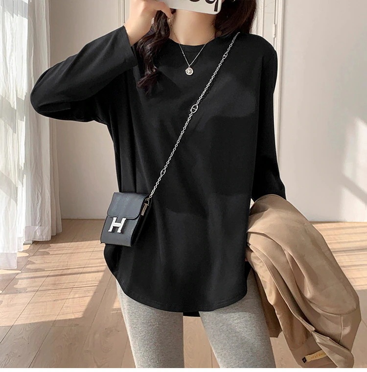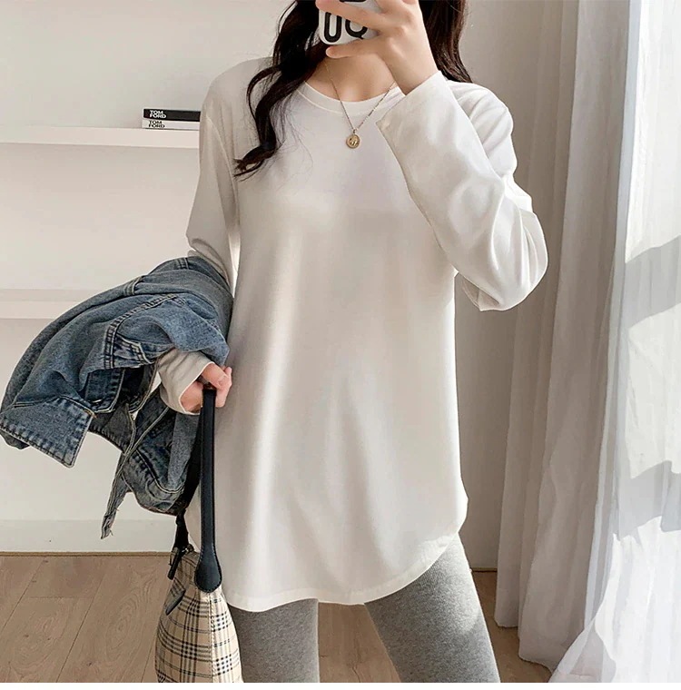 裏起毛 厚手 インナー カットソー 長袖 Tシャツ ロング丈 ロンT レディース 肌触り トップス ロングTシャツ ゆったり レイヤードトップス 大きいサイズ