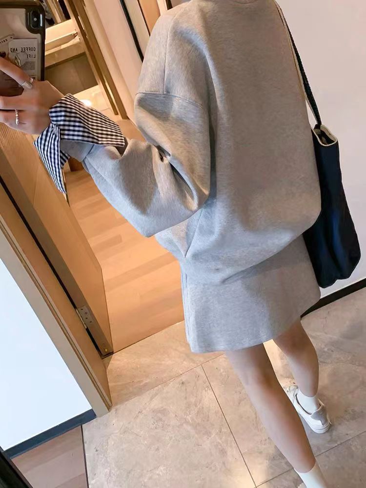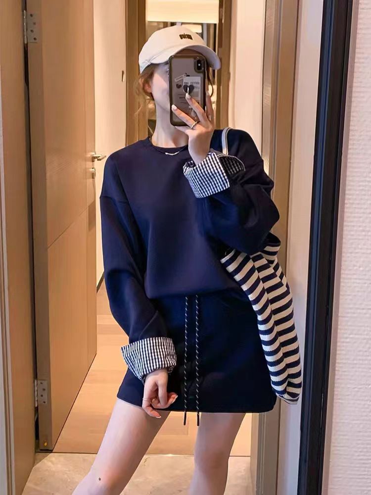春秋 セットアップ 運動 長袖スウェット スカート ワイドパンツ 切り替え フェイクレイヤード 韓国ファッション 柔らかい お肌に優しい 大きいサイズ ゆったり カジュアル レディース