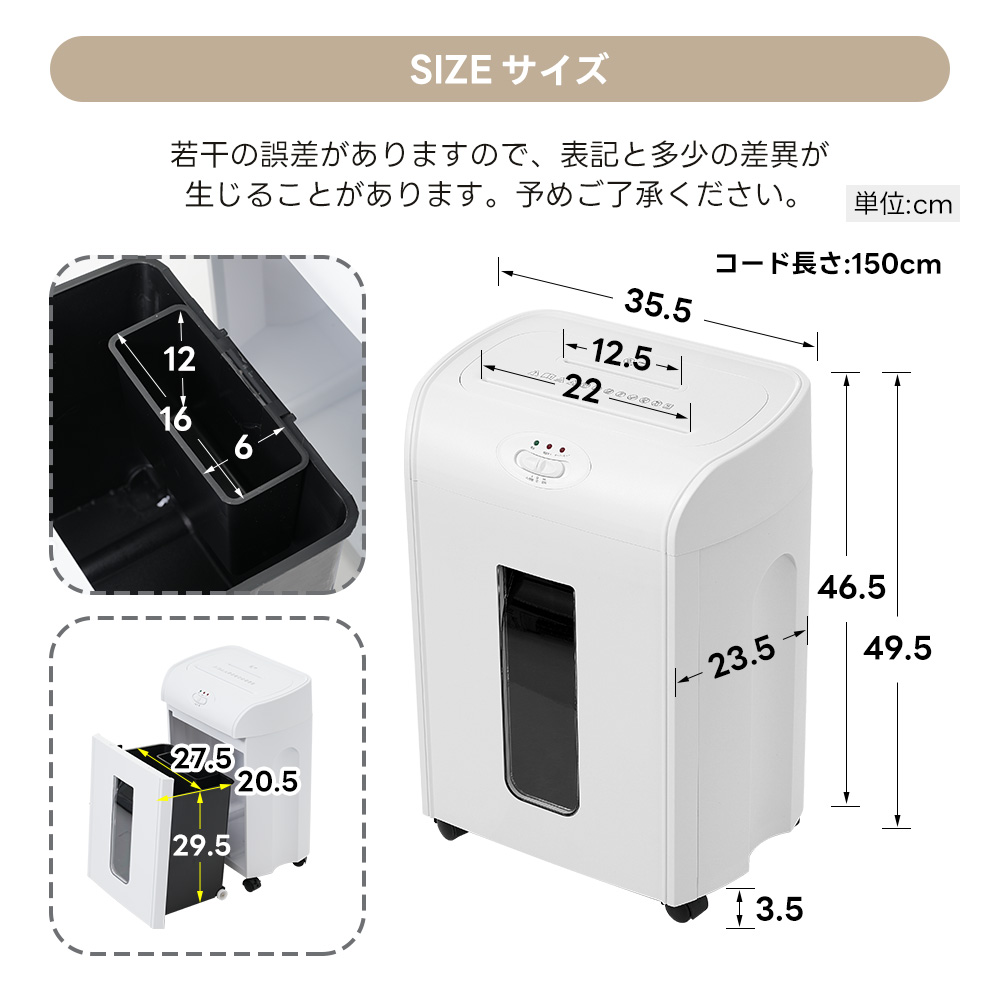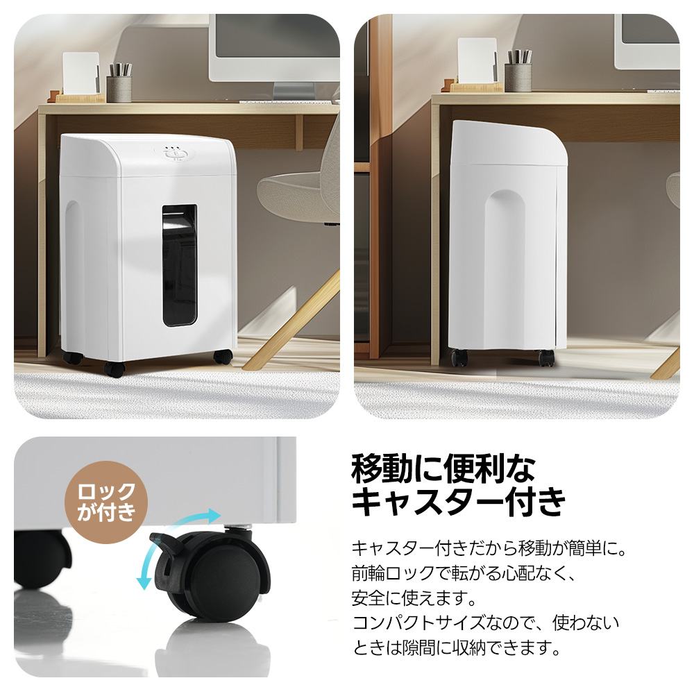 シュレッダー 18L 家庭用 業務用 電動 コンパクト 静音 家用 A410枚同時切断 CD カード対応 マイクロカット シュレッダー機 書類整理 個人情報 超静音 8分連続使用 White ABS