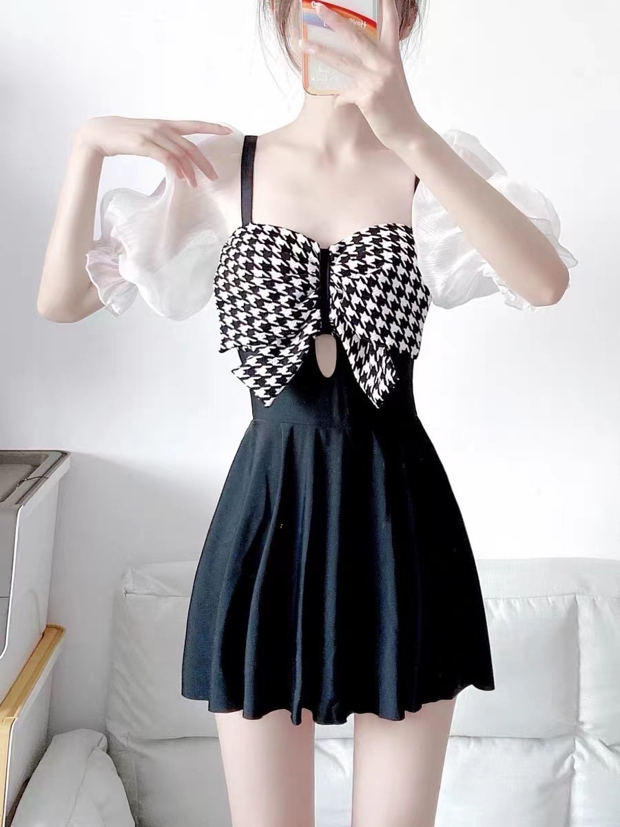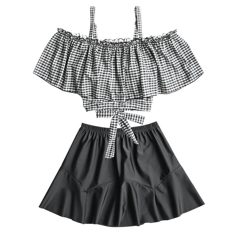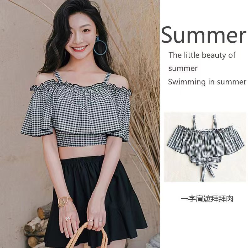 水着水着女性新しい夏のワンショルダーホルター水着韓国ins保守的なベリーシェーディングスキニースプリットスカート水着 水着セット