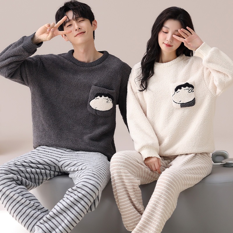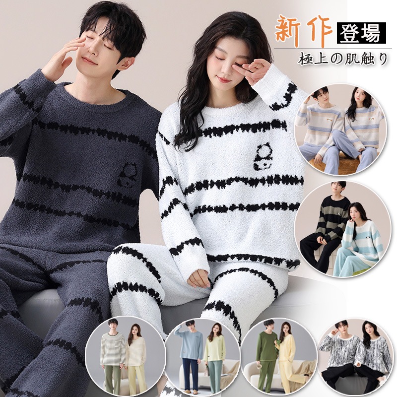 春秋 ペアルック 2タイプ カップル パジャマ 上質 人気 レディース メンズ ルームウェア ボア 厚手 カップル お揃い 上下セット セットアップ お泊まり ホテル