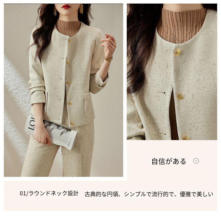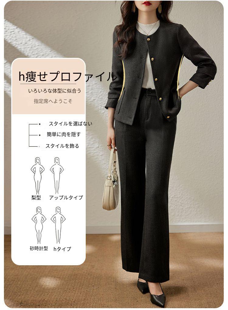 パンツスーツ ツイード レディース セットアップ ジャケット ツイードジャケット リクルートスーツ ノーカラー 長袖 秋 冬 フォーマルスーツ 体型カバー 厚手 ブラックフォーマル ママスーツ