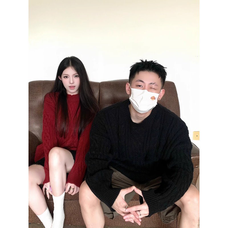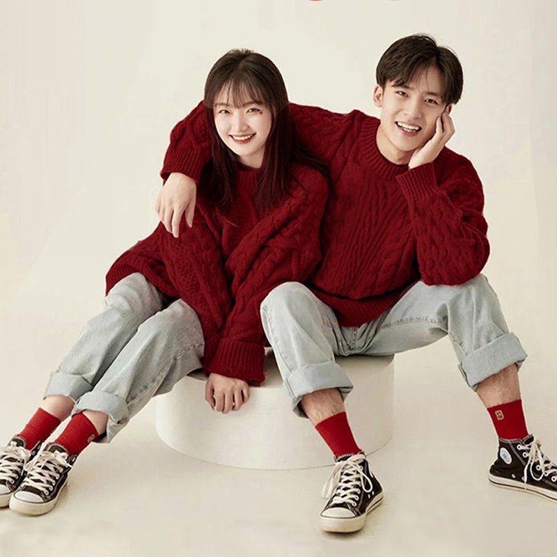 カップルはセーターを着て新しい秋冬のカップルは赤いクリスマスの怠惰な服を着ています チュニック