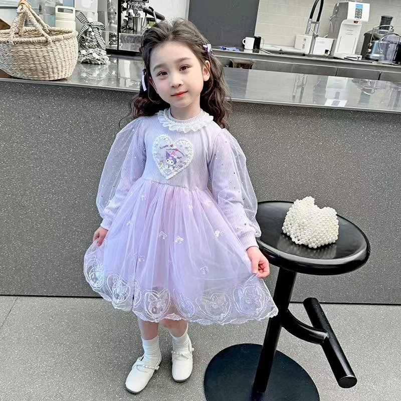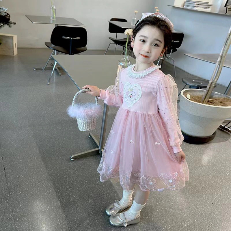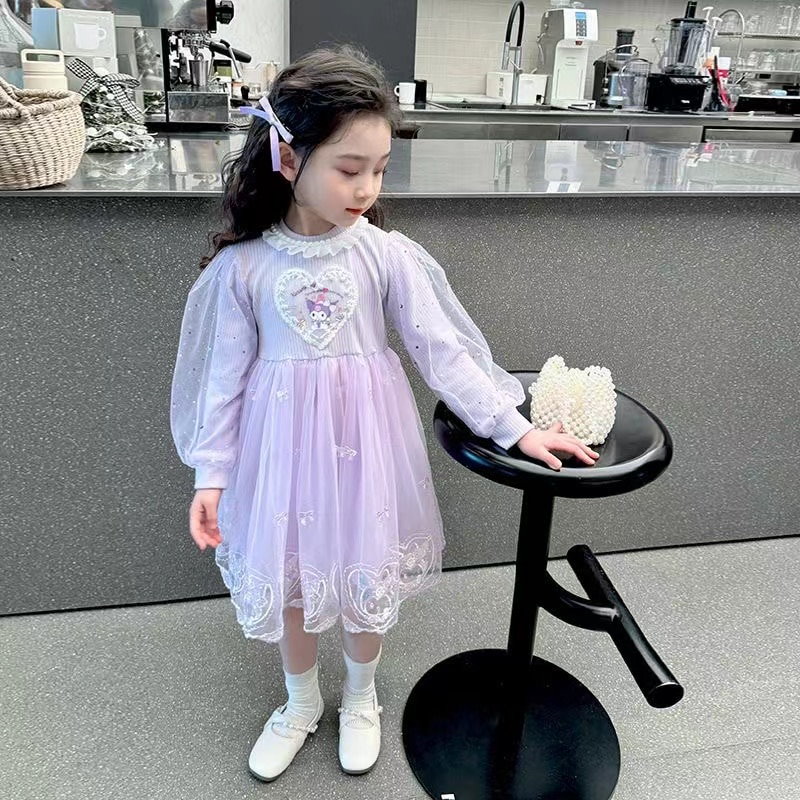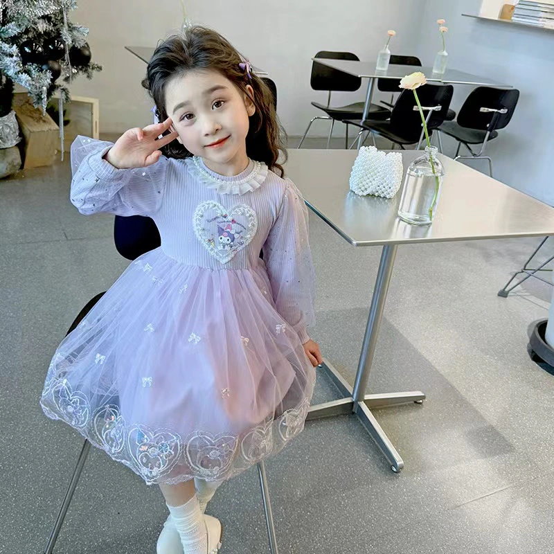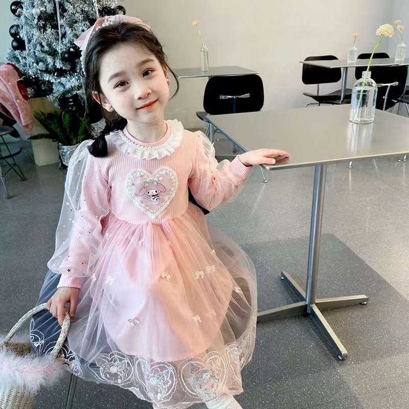 新作 可愛い サンリオクロミマイメロ キッズ ワンピース春秋 長袖 ドレス チュール ガールズ スカート 女の子 韓国子供服 プリンセス風 通学着通園着 90-140cm