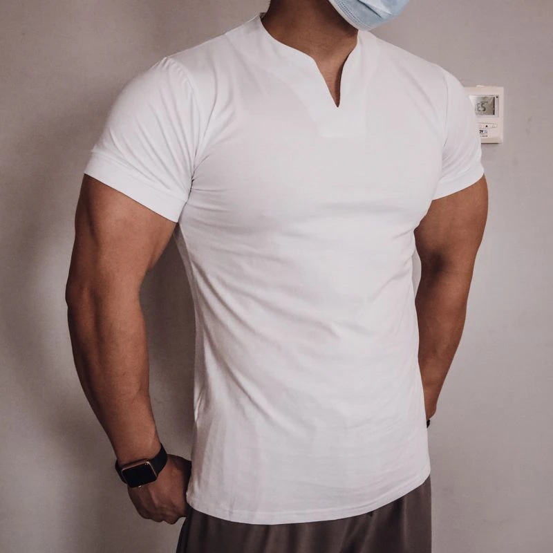 サマー 新しい フィットネス vネック 速乾 tシャツ メンズ 通気性があり 純色 走り 訓練し スリム 高い弾 汗を吸い 運動 半袖 フィットネス ヨガトップス