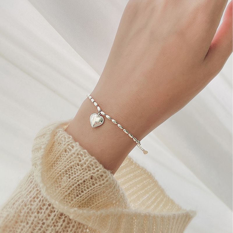 春夏 アクセサリー シルバー ブレスレット 着痩せ 韓国シンプル チェーン ハートデザイン 親友 バングル ブレスレット