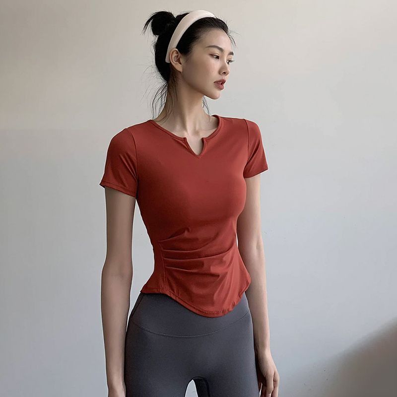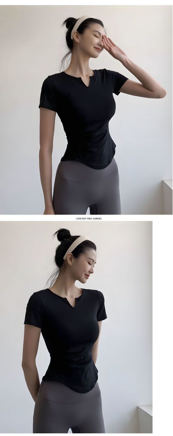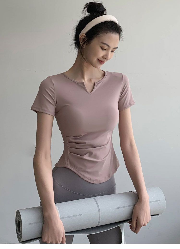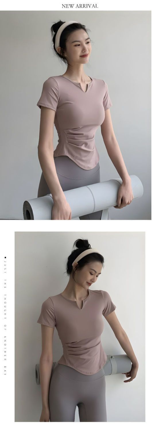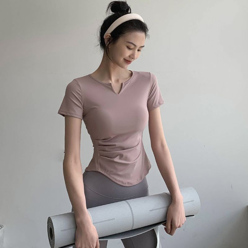 お家ヨガウェア おしゃれヨガウェア 吸汗 速乾 通気 フィットネスウェアヨガ 上着Tシャツ Vネックスリムランニング ヨガウェア フィットネス ヨガトップス