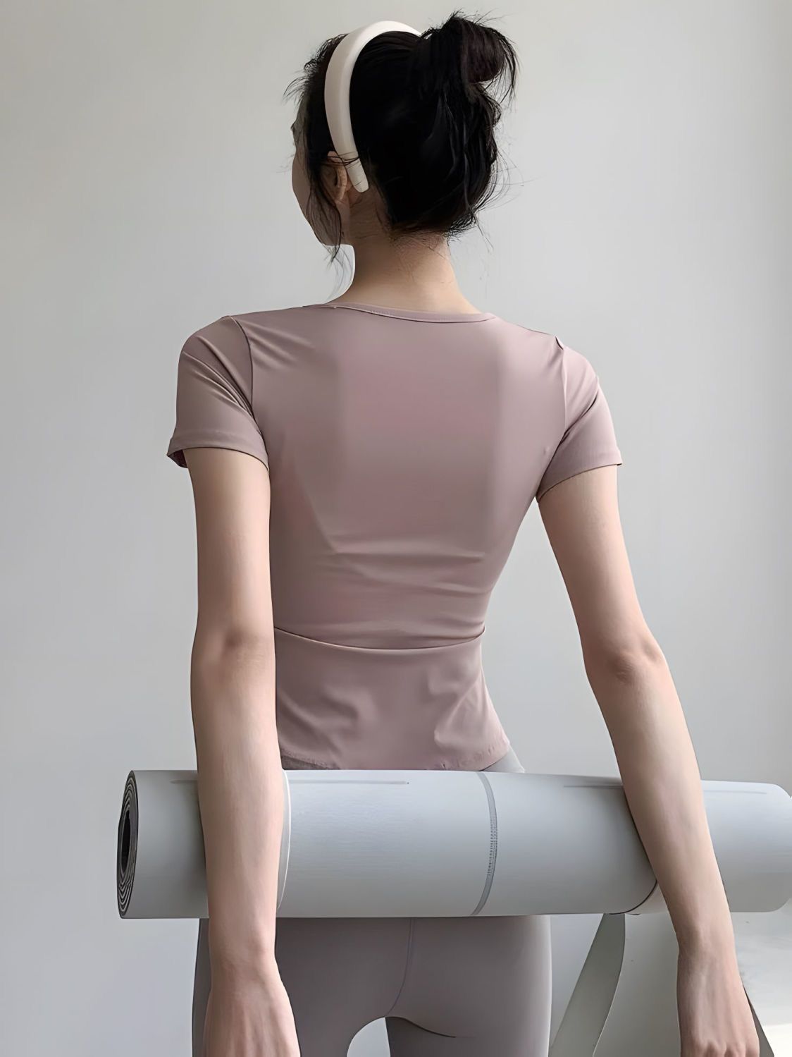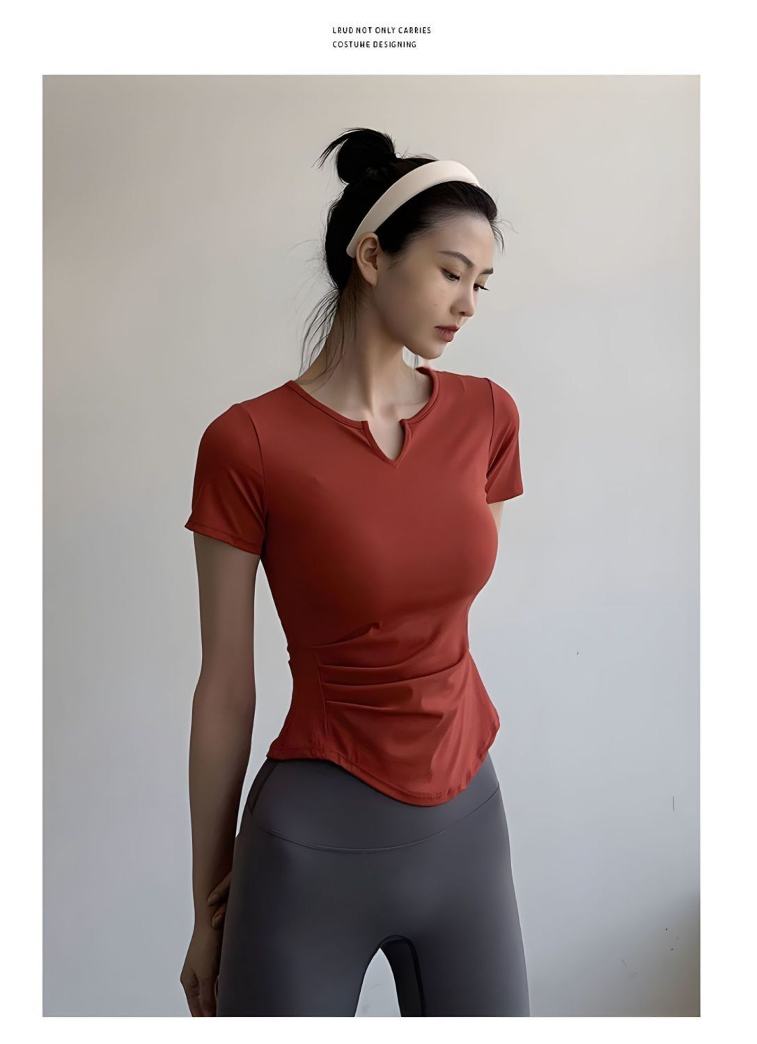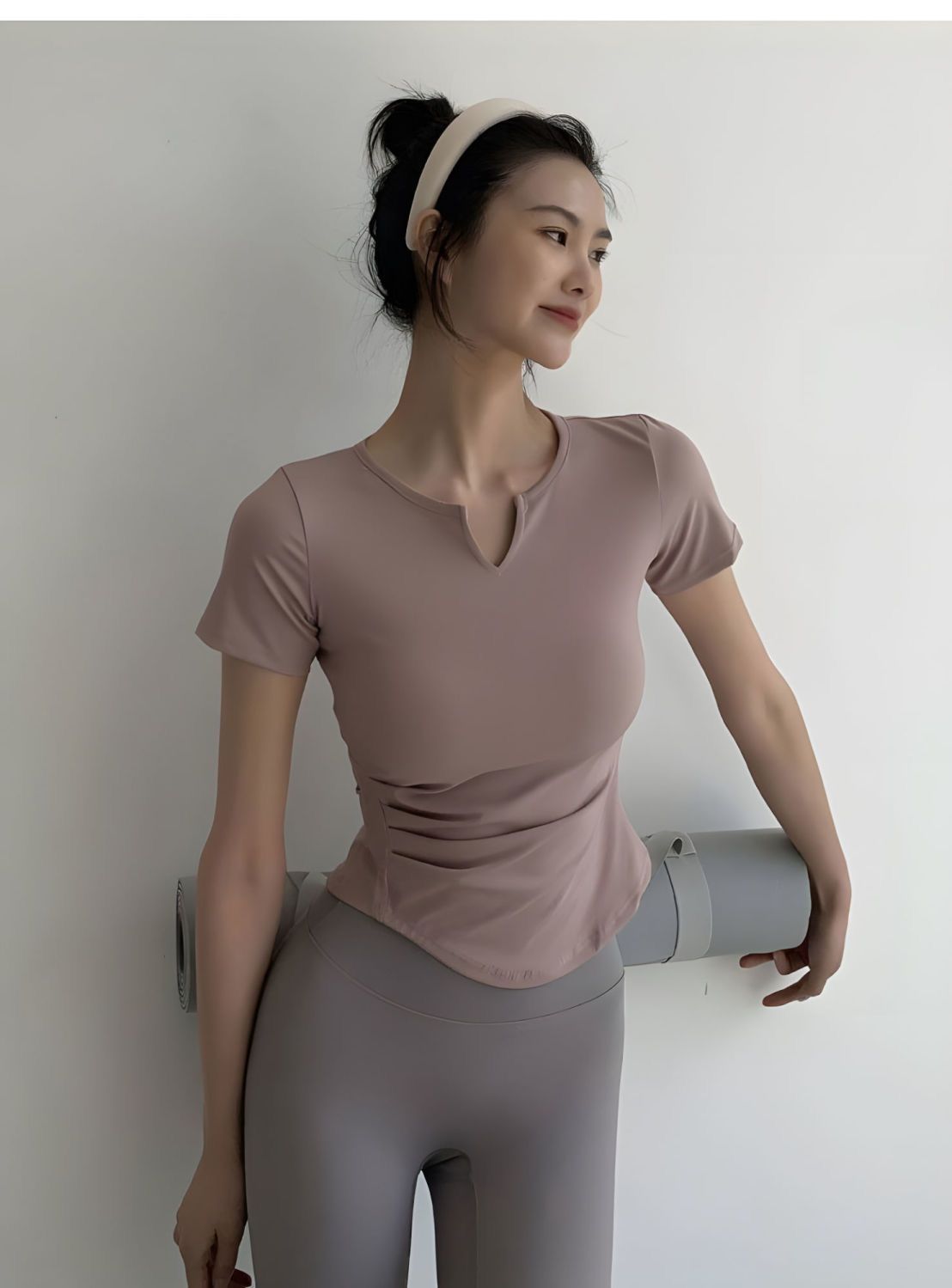 お家ヨガウェア おしゃれヨガウェア 吸汗 速乾 通気 フィットネスウェアヨガ 上着Tシャツ Vネックスリムランニング ヨガウェア フィットネス ヨガトップス